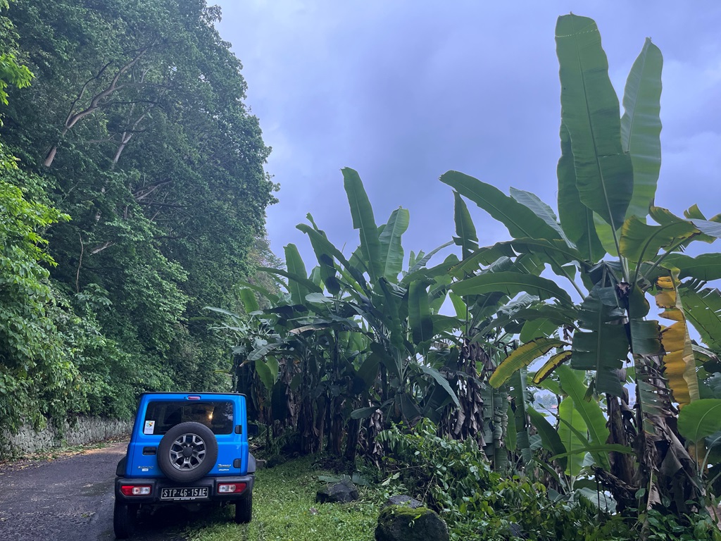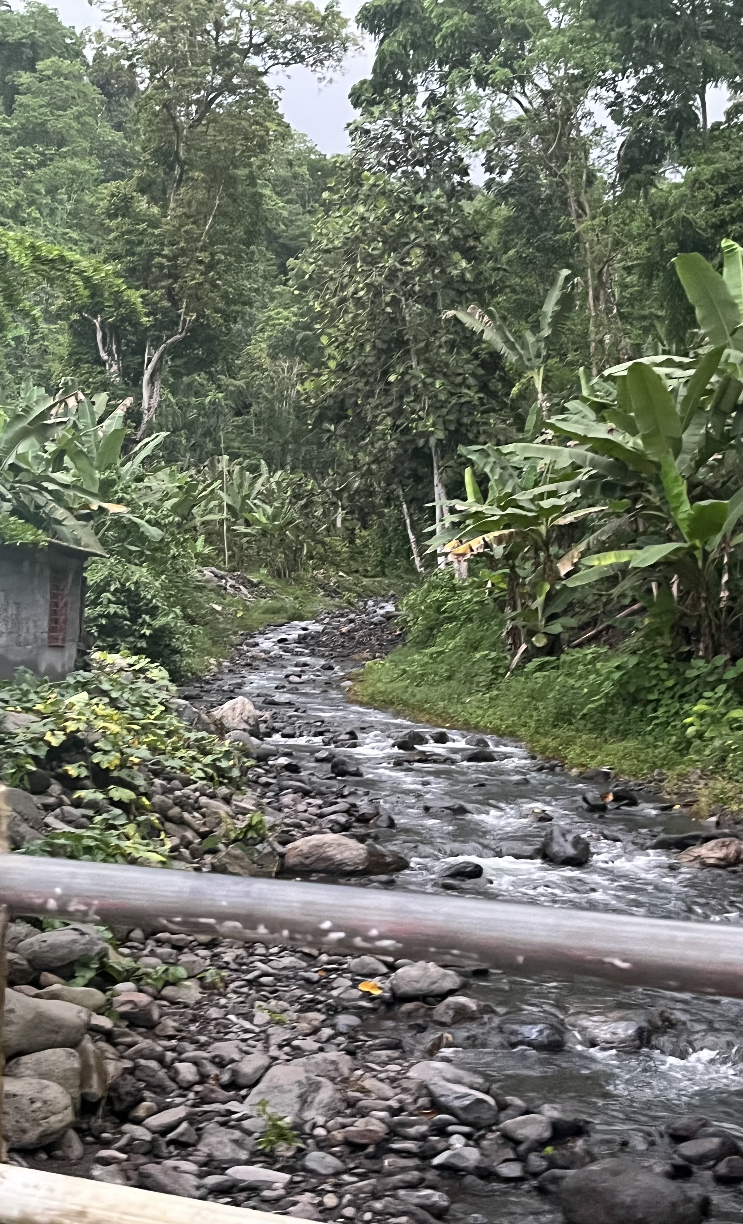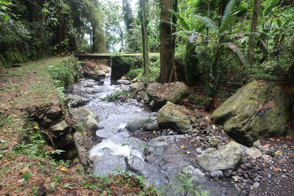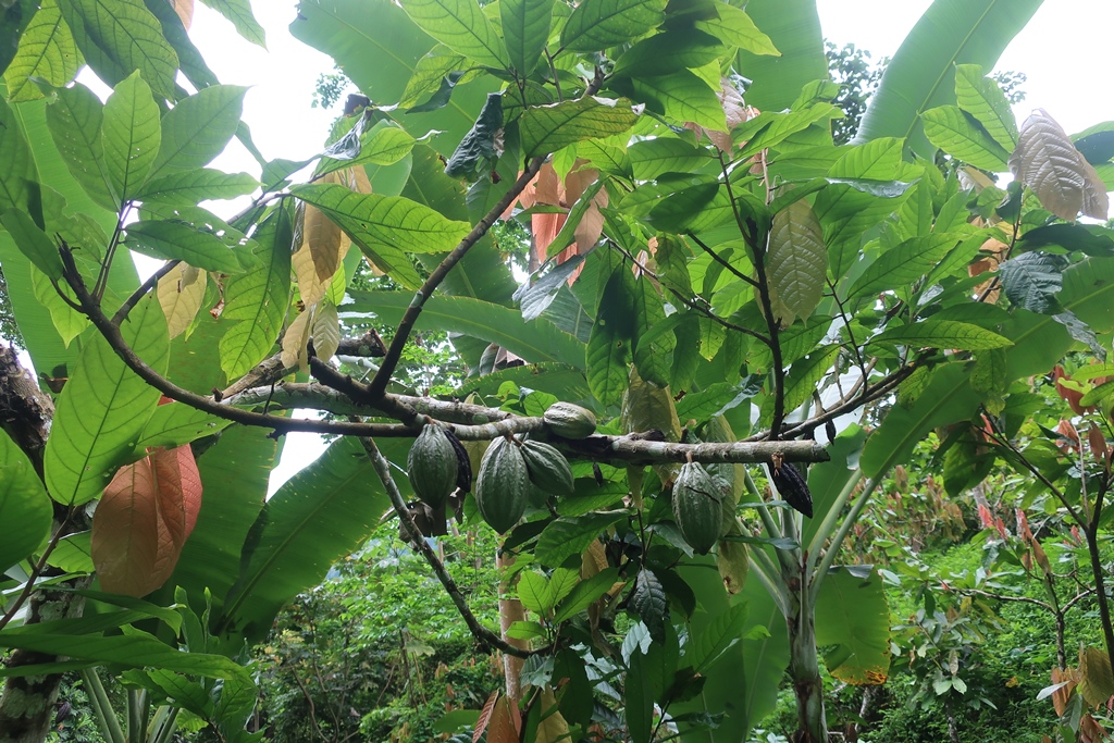 De manhã, entre as 8 e as 9 horas, iniciámos o trajeto de jipe com o guia, tendo passado pela Roça Ponta Figo (relativamente perto de Mucumbli) e feito um pouco de uma estrada irregular e não asfaltada em sentido ascendente. Estacionámos por aí para começar então a Rota da Água e do Cacau Biológico, o que representaria um contacto pleno com a natureza – cacaueiros, ribeiras, cascatas (entre ouras coisas),