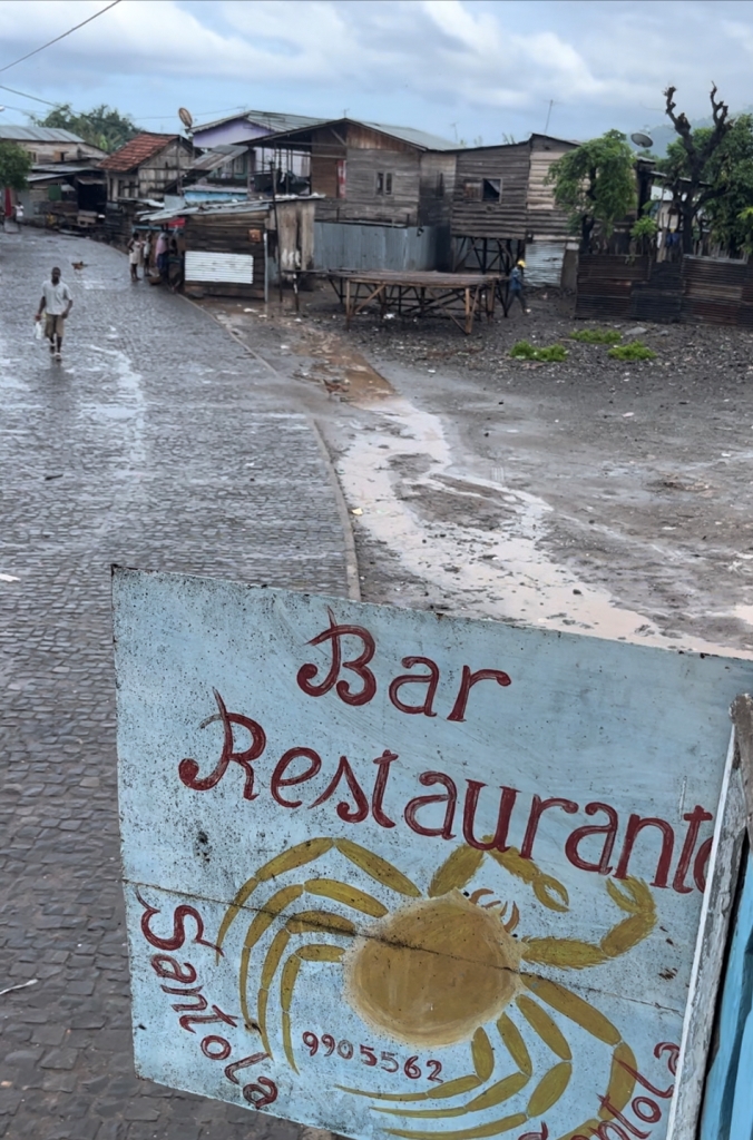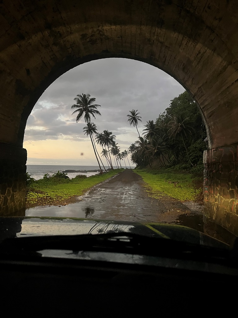 O nosso plano da viagem dizia-nos que era dia de fazer uns quantos quilómetros, sendo os últimos picados, devido ao estado da estrada e com chuva – passagem pela capital, almoço na Roça de São João Angolares e seguir para o sul onde iríamos pernoitar – Praia Inhame.