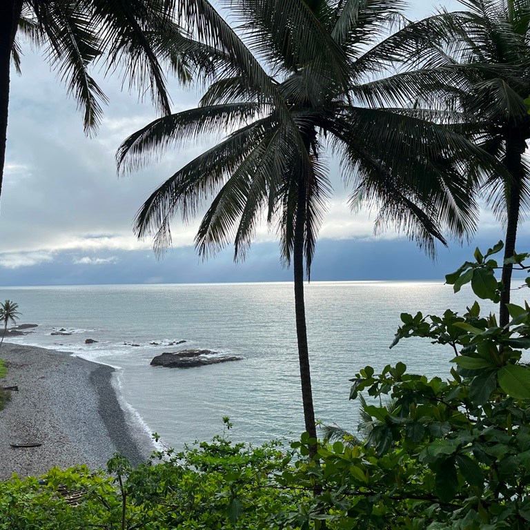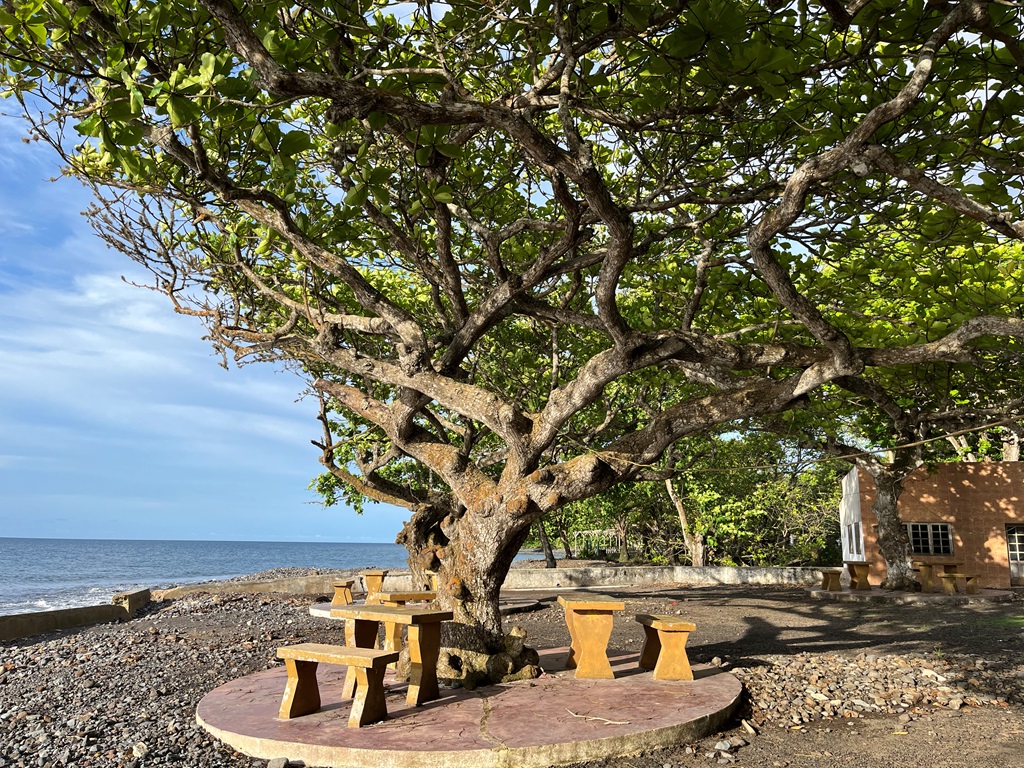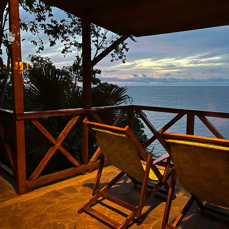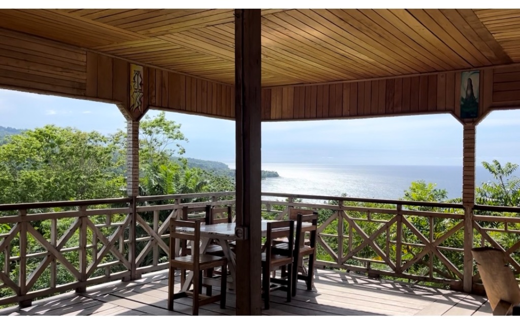 (Mas antes disso fomos fazer check-in no alojamento Mucumbli, tendo-nos desde logo apercebido que era um local onde se respirava tranquilidade e com uma localização fantástica – vista que oscilava entre o verde da imensidão de árvores e arbustos e o azul do mar)