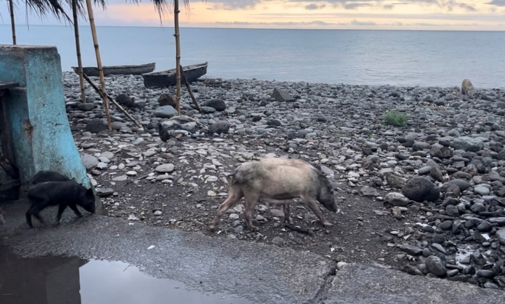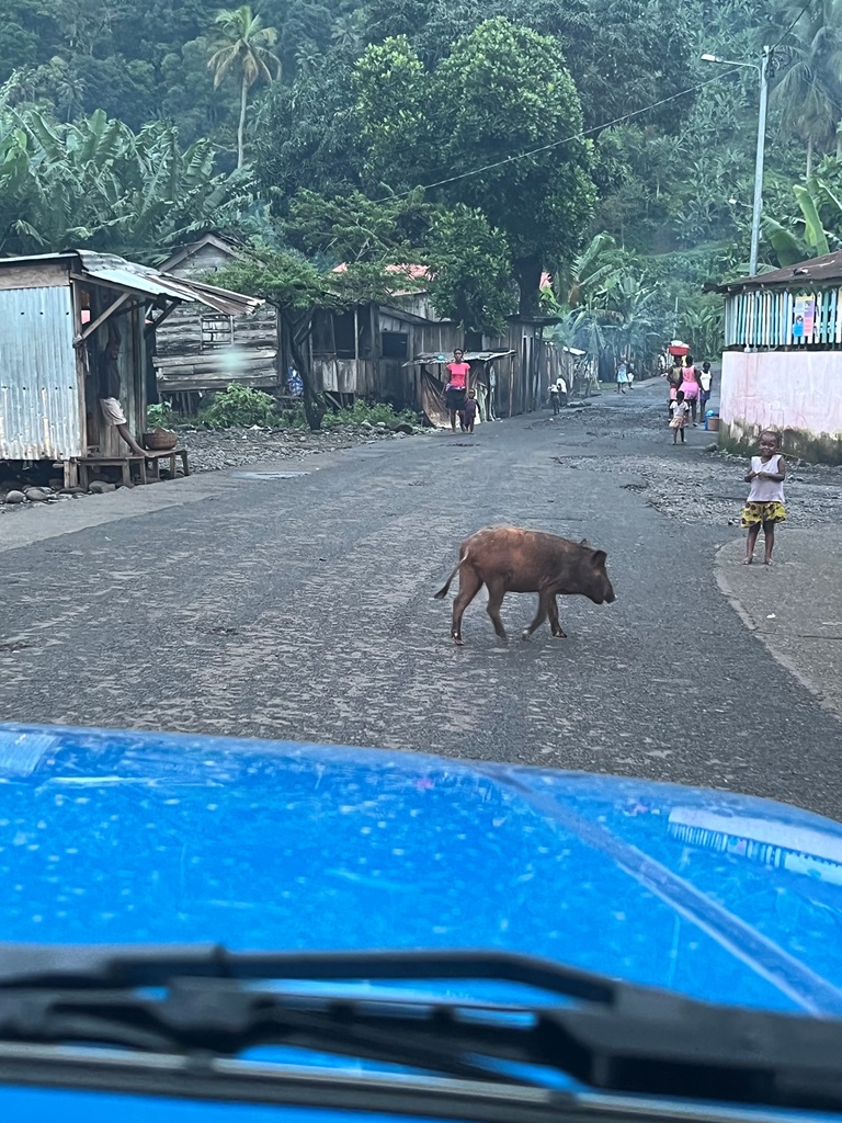 Quando começámos a vislumbrar o casario – casas rústicas de madeira (pena o seu estado de conservação) de Santa Catarina, foi-nos dado observar pessoas, que estavam no seu ritmo leve- leve, sentadas ao longo da estrada, crianças a brincar e saltitar no rio e mulheres a lavar roupa, e porcos e cabras a correr atrás uns dos outros! Era um cenário digno de um filme!