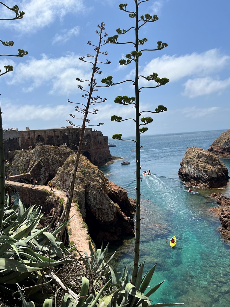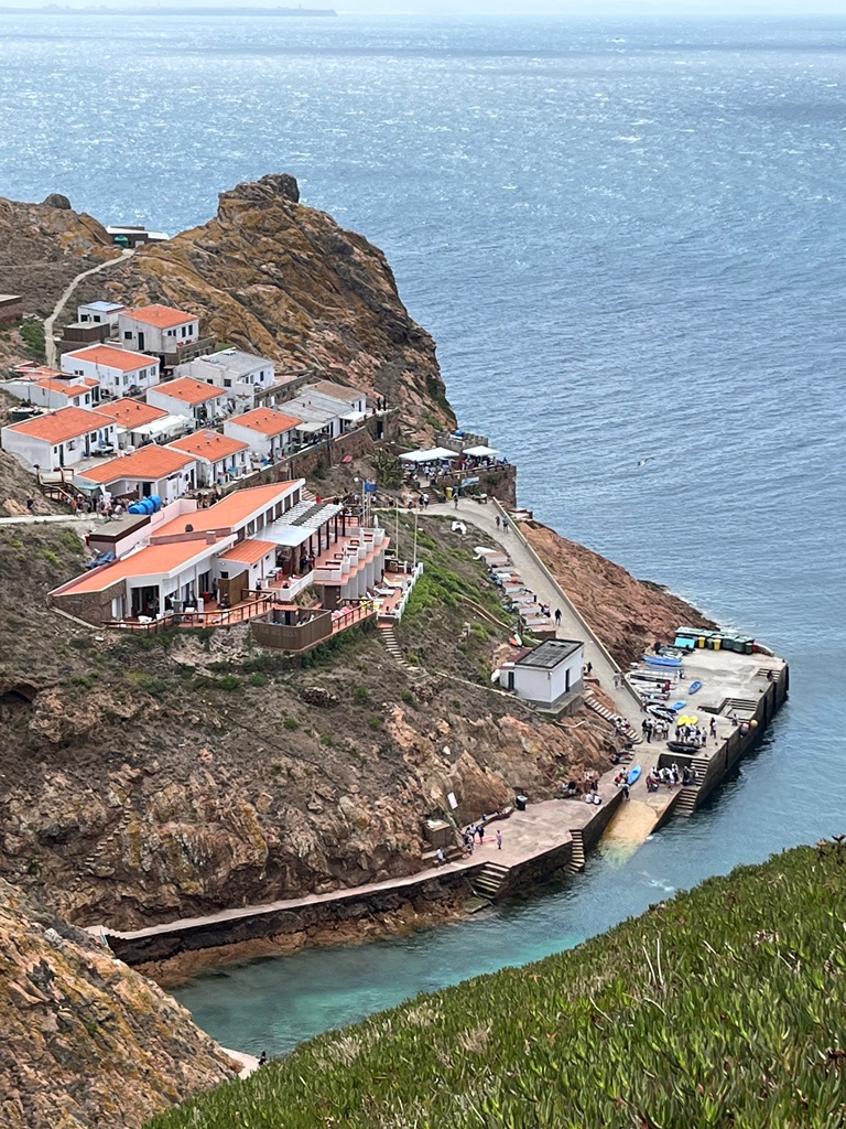 Deixando o barco e começando a subir uns degraus e ainda antes de iniciarmos o passeio, deliciámo-nos desde logo a criar perspetivas e começar a gastar o “rolo”. As vistas para a zona do porto, enriquecido com alguns barcos, rochedos e a praia, eram de cortar a respiração!
