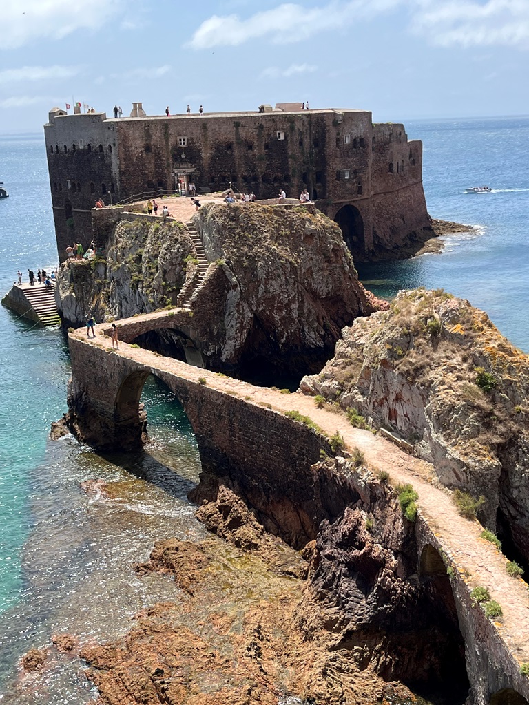 Aí começámos uma descida de 300 degraus, com paisagens maravilhosas, que nos conduziu ao Forte de S. João Baptista, construído no topo de um ilhéu, estando ligado à ilha por uma ponte de pedra.