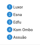 Eis o itinerário que fizemos ao longo do rio Nilo.