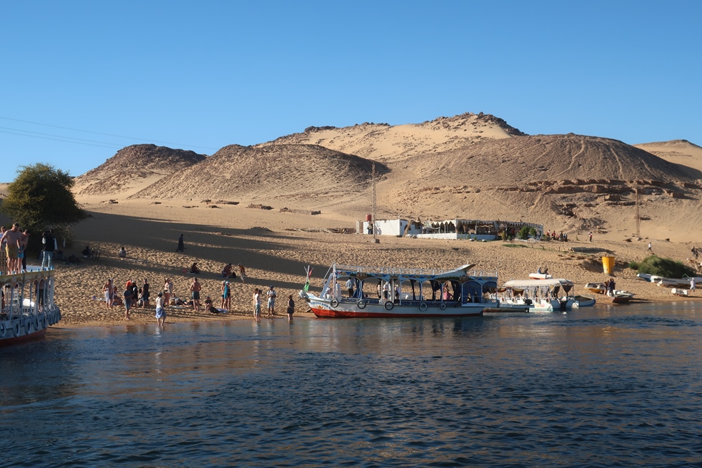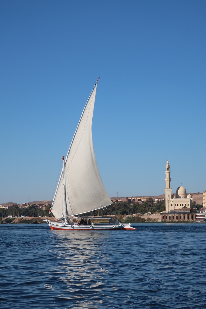 Volvida a manhã, muito mais esperava por nós! Saímos do navio a pé e bem perto, numa zona de cais, iniciámos um passeio de faluca. O nosso grupo (de 15 pessoas) iria viver mais uns momentos juntos. Foi uma experiência muito interessante: poder observar a cidade de Asuão do rio, com os seus minaretes e edifícios,