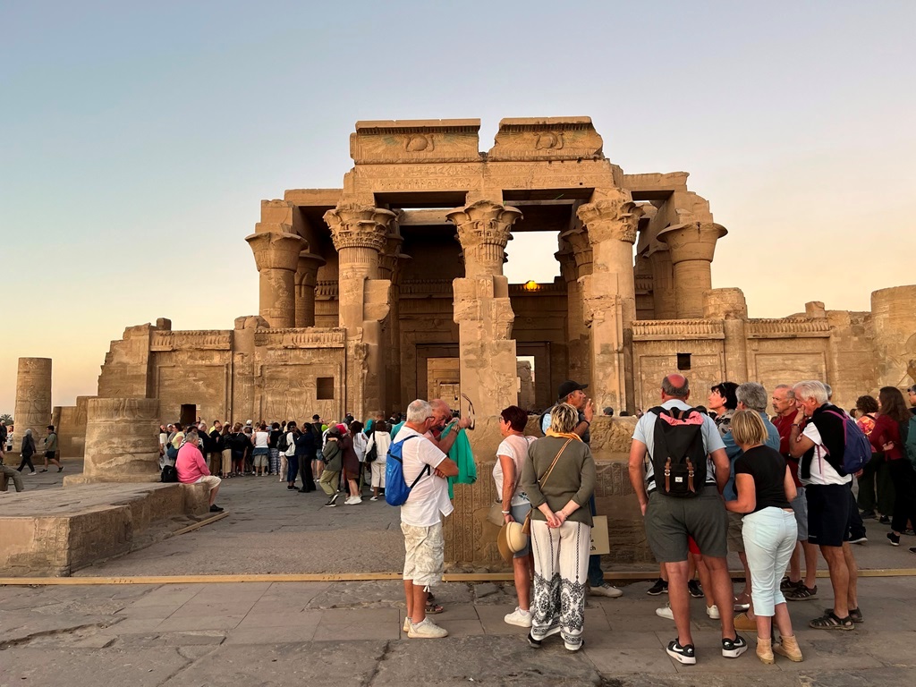 O navio começou a fazer-se ao rio para prosseguir viagem, tendo o almoço já sido a bordo. Ao longo da tarde fomos disfrutando da tranquilidade oferecida pela navegação no deck superior, convivendo, tirando fotografias das 2 margens do rio e saboreando um chá (oferecido pela empresa) até atingirmos Kom Ombo. Assim que acostámos, saímos a pé para irmos visitar o Templo e o Museu dos Crocodilos de Kom Ombo.