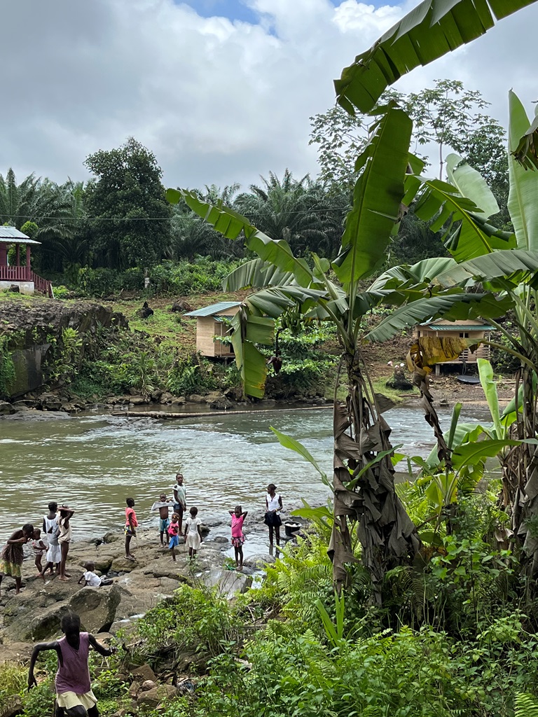 De quando em vez surgiam porcos, cabras ou ainda vacas que pacatamente lá circulavam ou atravessavam a estrada, bem como crianças – umas brincavam, outras vinham da escola com a sua mochila às costas, ou ainda quando passávamos numa ponte por cima de um riacho ou rio, havia pessoas a lavar roupa ou a colocá-la no chão fazendo da beira do rio e da estrada um estendal e crianças a deliciarem-se a tomar banho naquelas águas mornas.