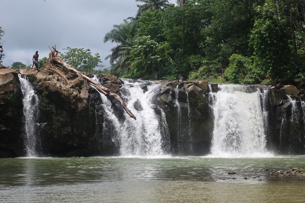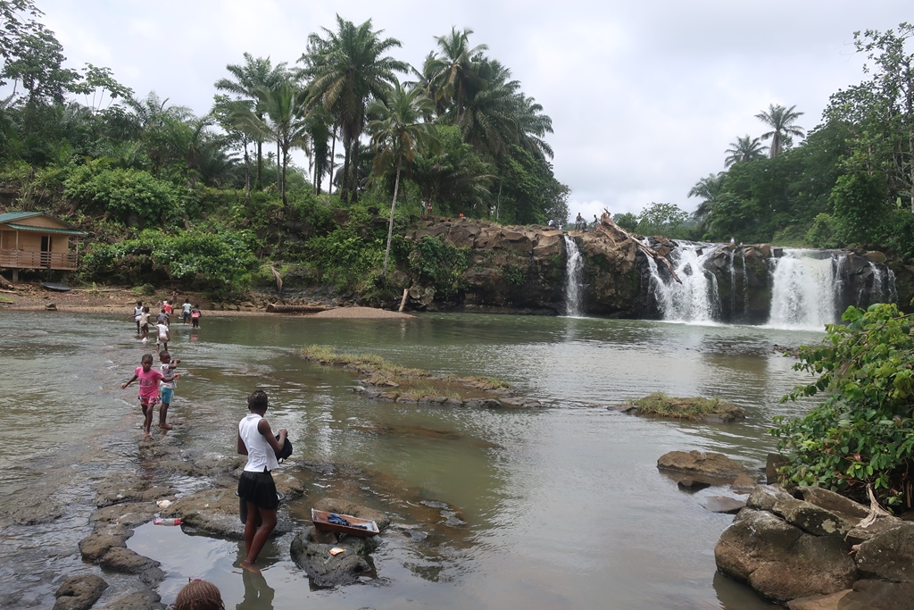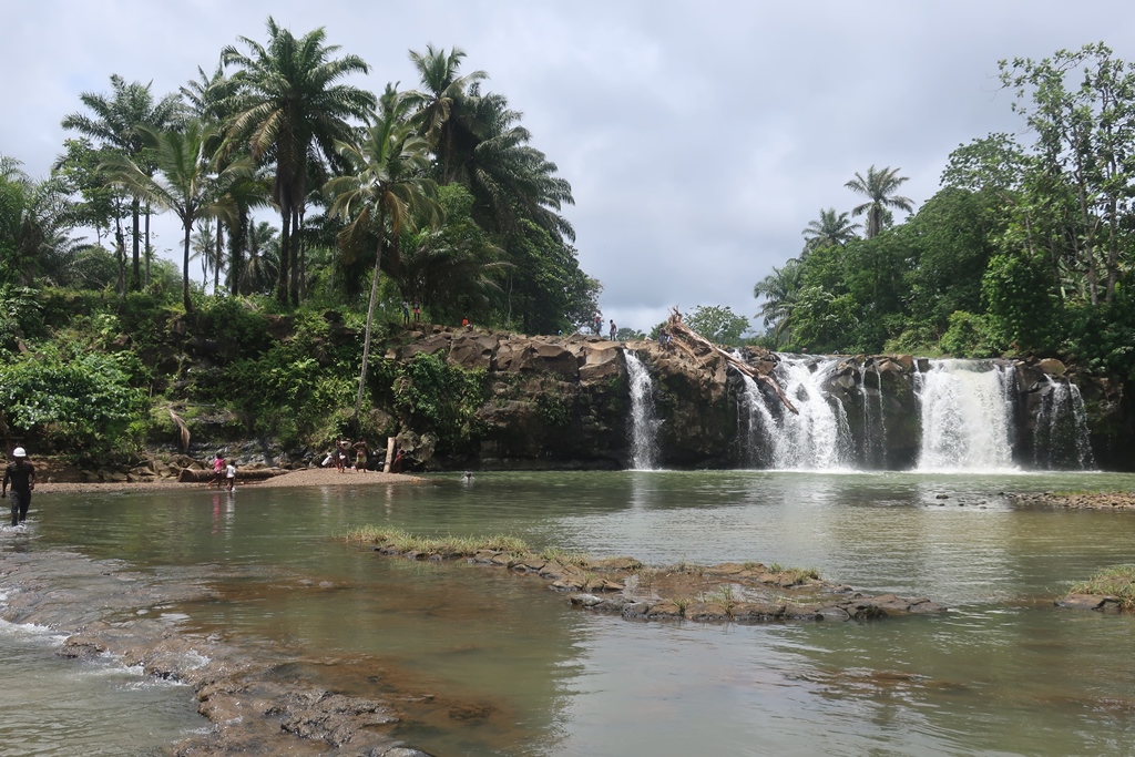 Fomos até ao fim da estrada e estacionámos por ali. Bem escondidinha/o do lado direito, estava um riacho/lagoa com pessoas a lavar roupa bem como crianças a aproveitar as águas tranquilas e mornas,