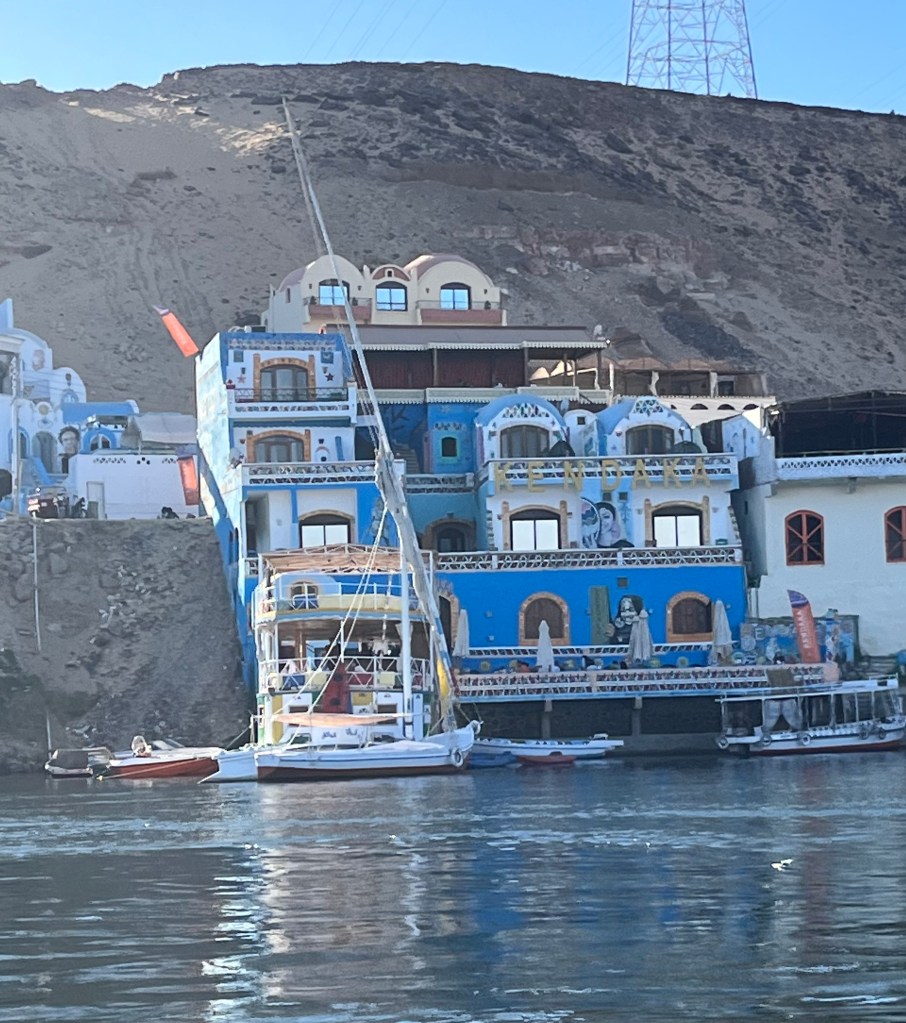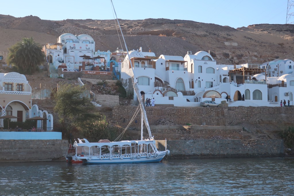 O nosso navio estava acostado a Assuão, bem perto de uma zona de cais donde partiam os barcos, Nilo fora (1ª parte – numa faluca e depois num pequeno barco a motor) para a aldeia Núbia, situada na margem oeste do rio Nilo.