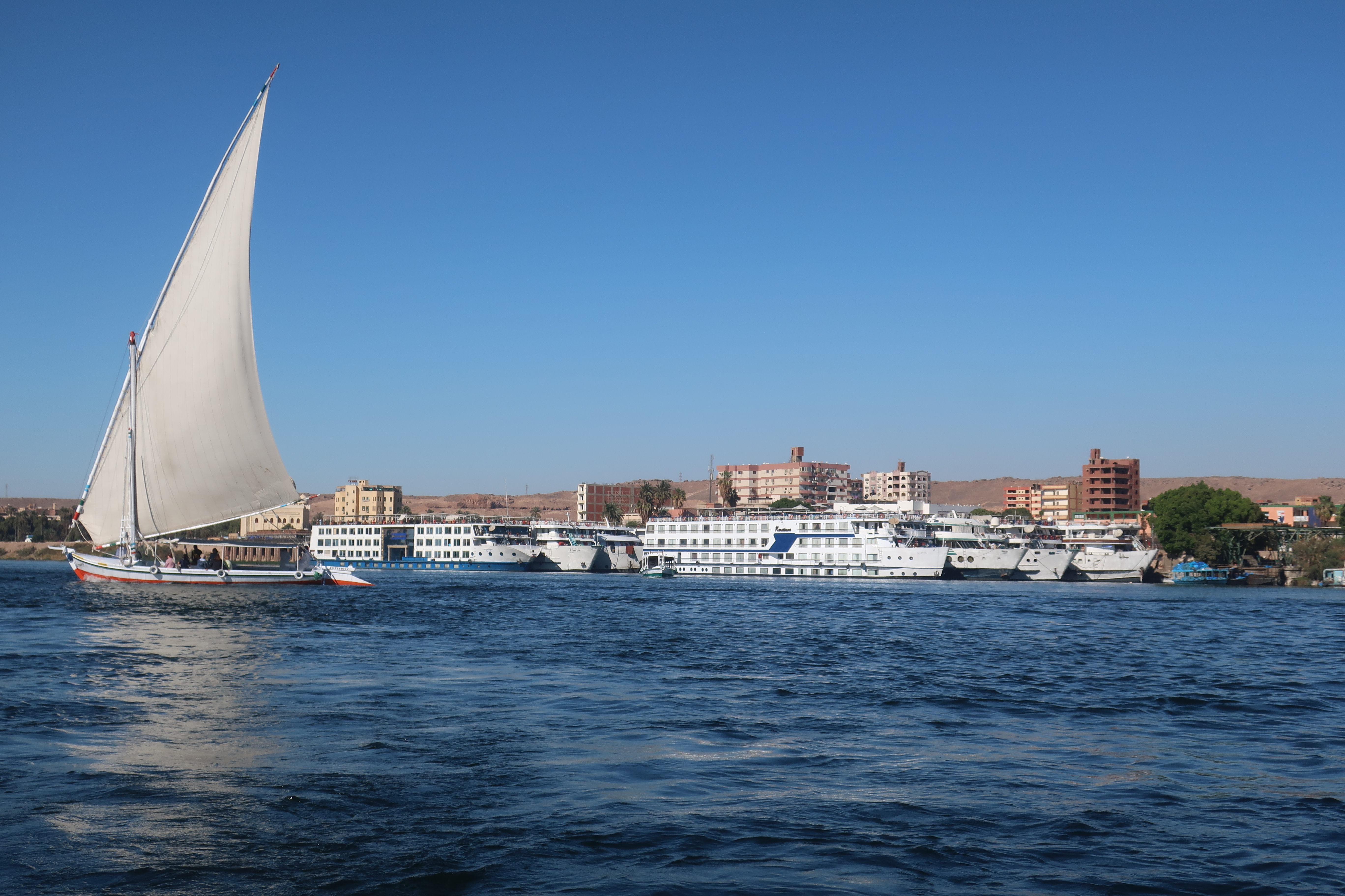 O trajeto representou, desde logo, uma experiência muito interessante: poder observar a cidade de Assuão do rio, com os seus minaretes e edifícios,