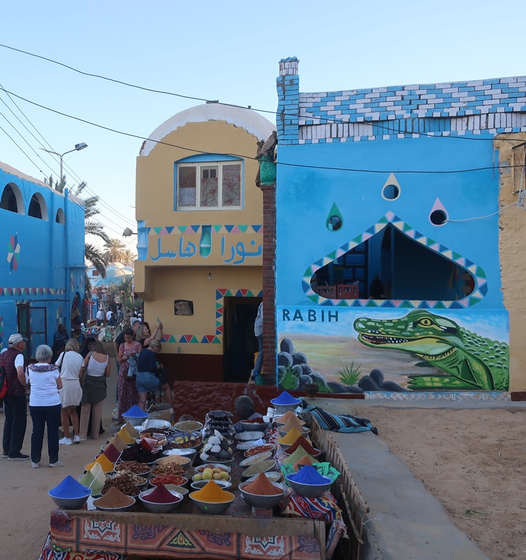 Demos uma volta a pé pelas ruelas da aldeia: tinha uma oferta interminável de lojas – desde chás, roupas típicas, peças de cerâmica, especiarias, souvenirs (com vendedores menos insistentes que no resto do Egito),
