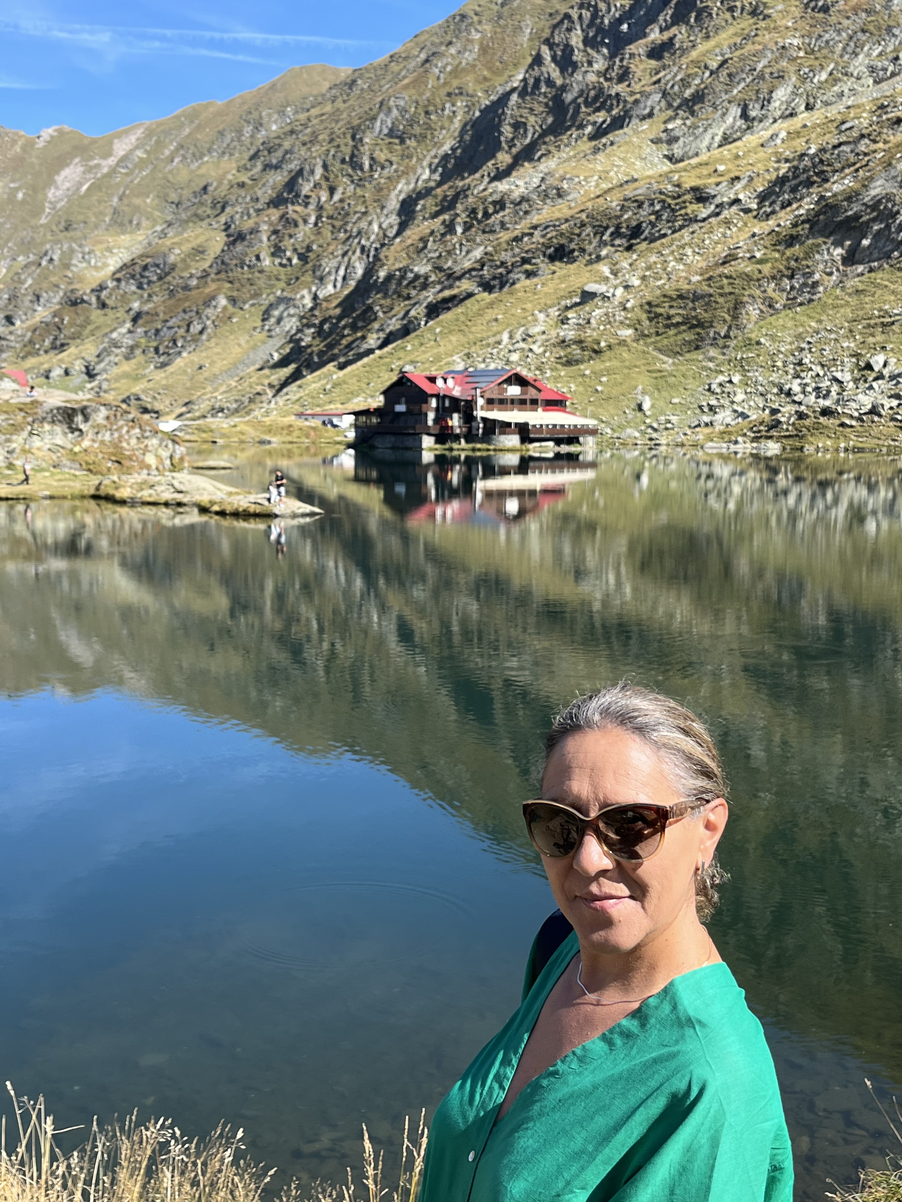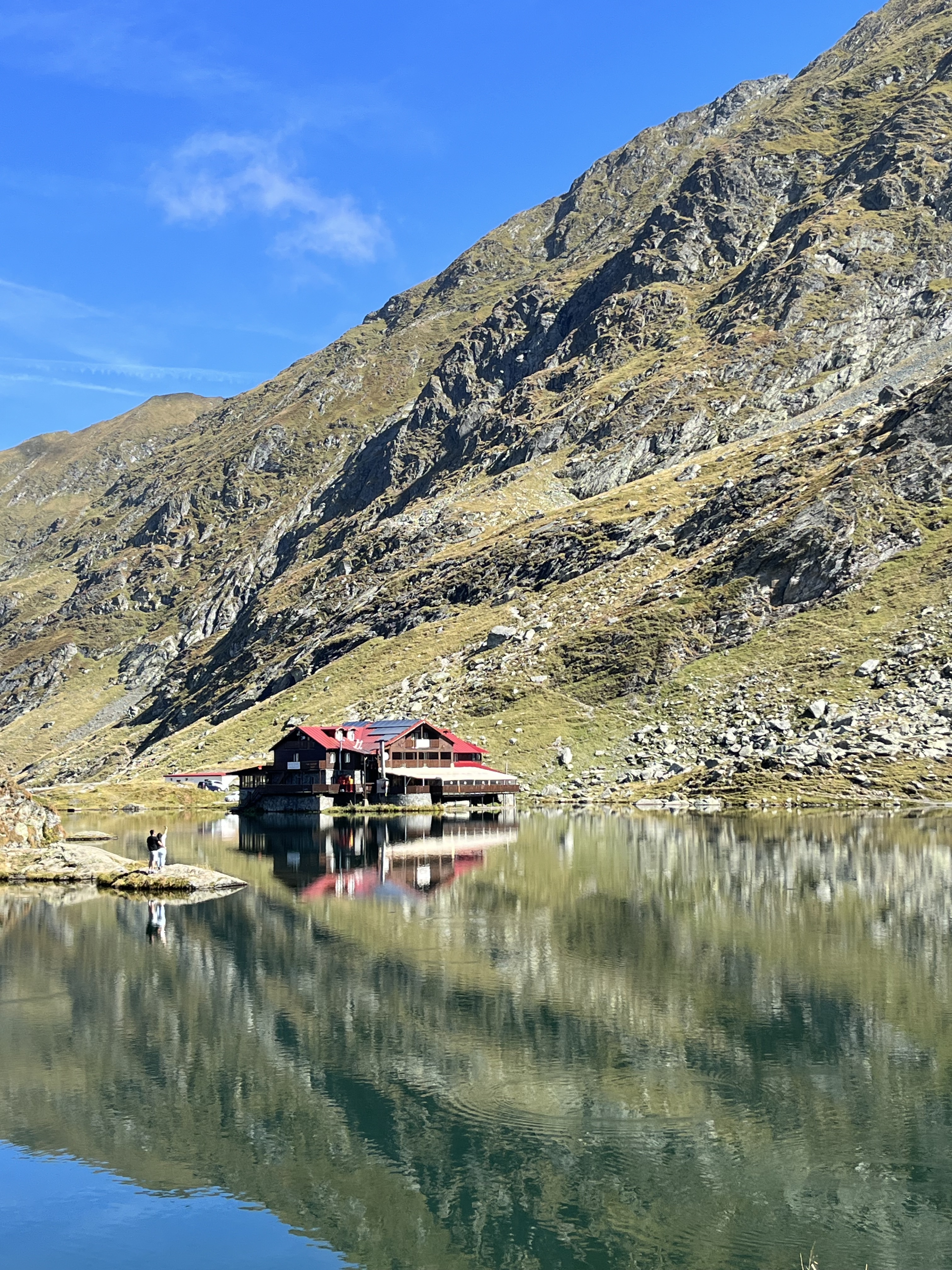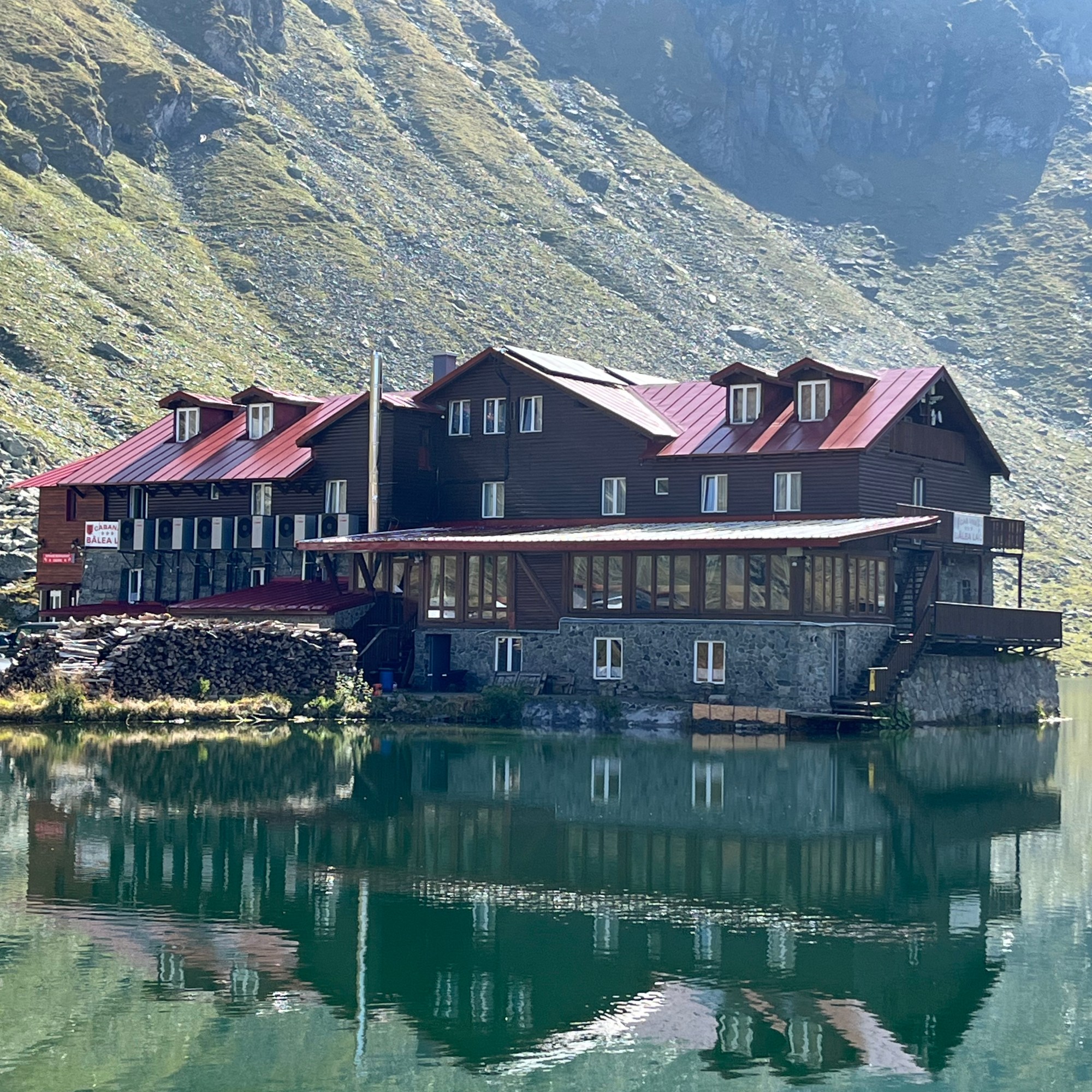 Colocámos o carro num dos parques de estacionamento (pago) e dirigimo-nos para o lago, sem, no entanto, não poder esquecer que os nossos estômagos reclamavam. Íamos gozando aquela paisagem impressionante com a montanha e as cabanas refletidas na água, o que tornava o cenário ainda mais idílico e recordando as pesquisas feitas, verificámos que queríamos muito almoçar no restaurante Cabana Bâlea Lac, mesmo à beira do lago.