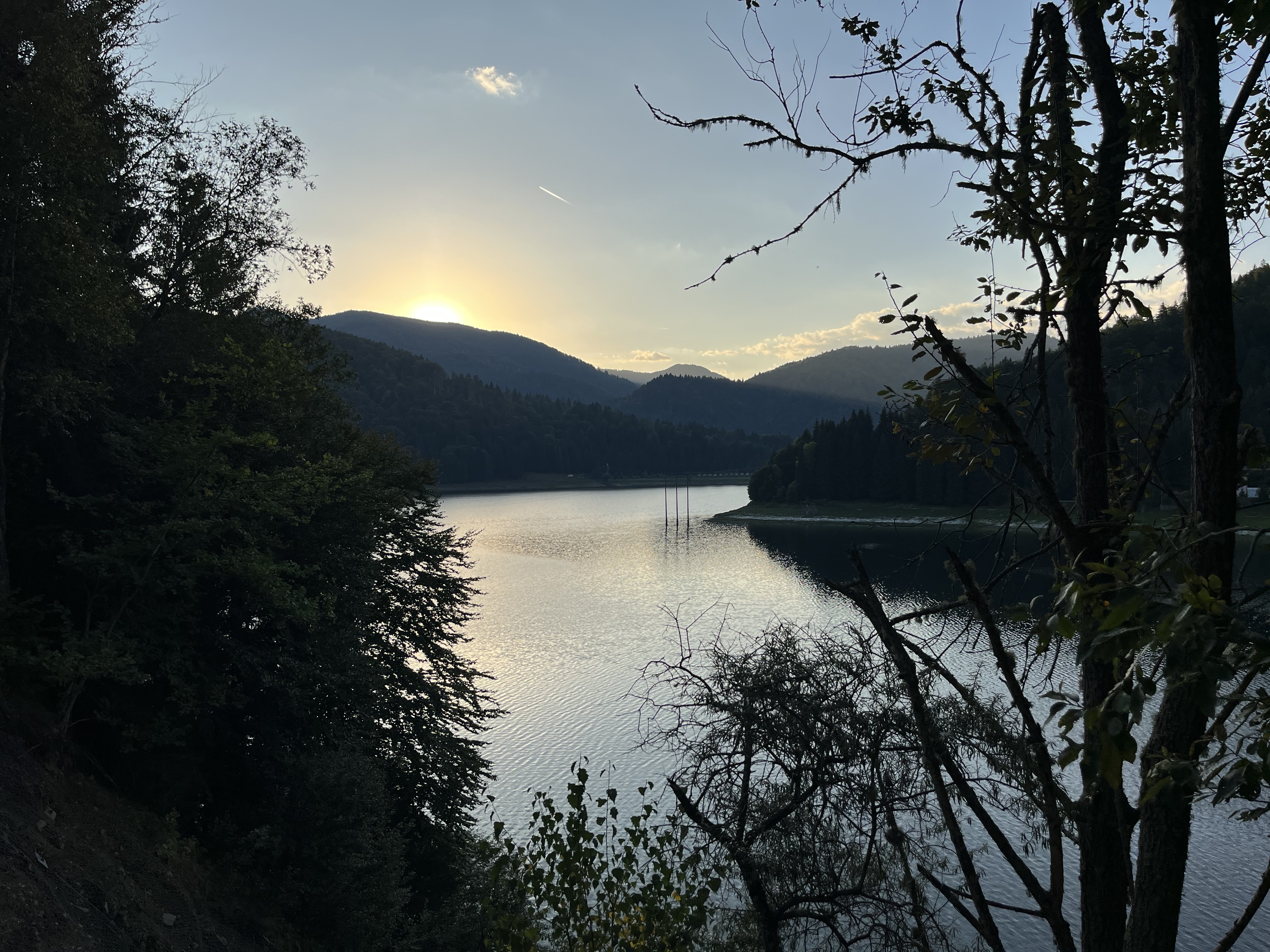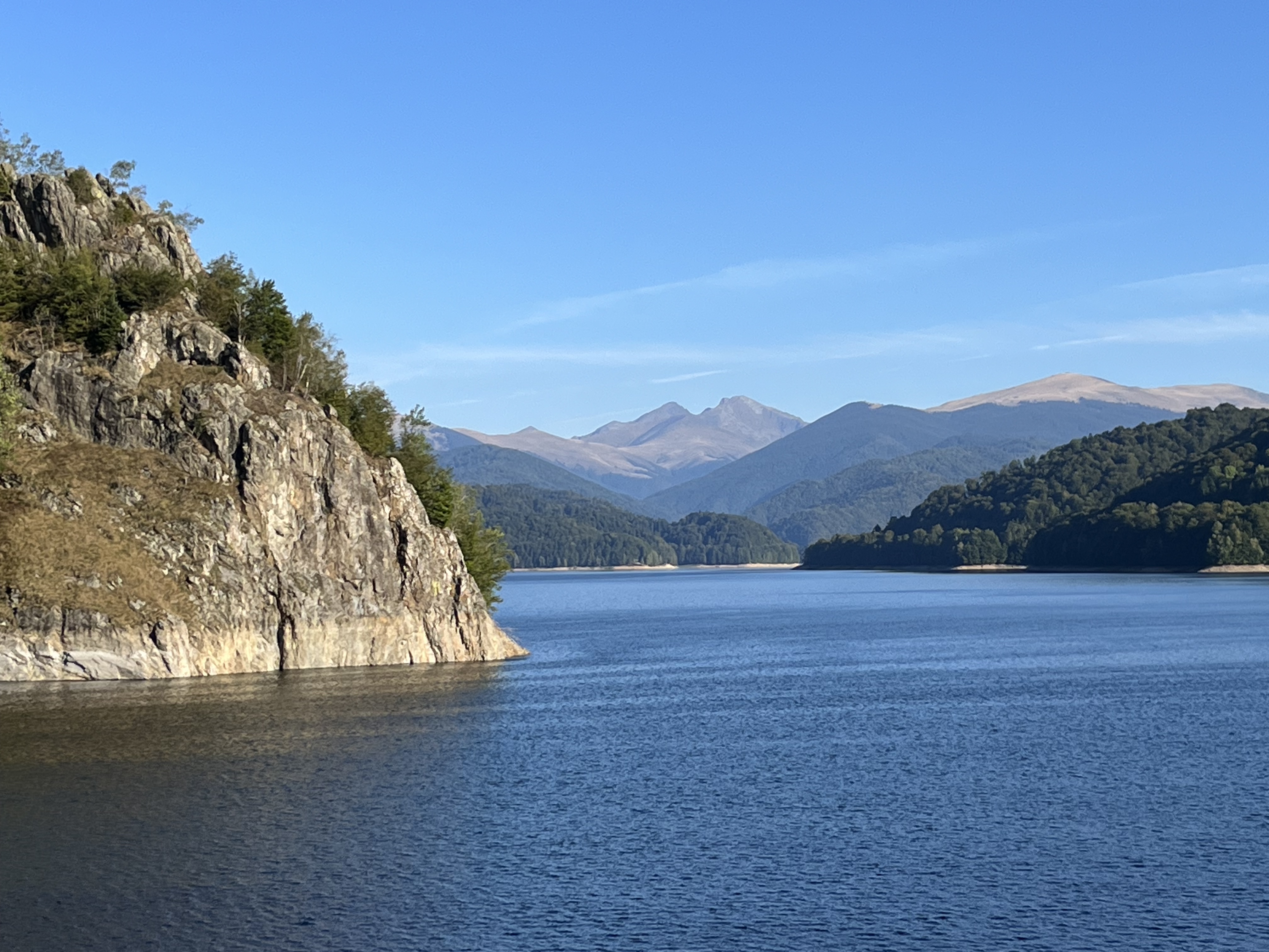 Após alguns quilómetros chegámos ao local tranquilo onde iríamos pernoitar – Hotel Piscul Negru, no meio do verde. No ato do check-in perguntámos ao rececionista o que havia por perto. Mencionou uma Cascata (Capra), o lago e barragem Vidraru e também a hipótese de ao longo dessa estrada podermos ver ursos. Como ainda era cedo aí íamos nós nessa aventura. E não é que vimos uma família de ursos?! Não há palavras para descrever momentos como esses! É claro que os captámos para todo o sempre fotografando-os e filmando-os. Continuámos a deliciar-nos tendo como paisagem: o verde, a água do lago Vidraru e por vezes casario na outra margem do lago refletido nas suas águas e um pôr do sol a abrilhantar ainda mais o cenário. São momentos que enchem a alma. Como se percebeu o dia estava a declinar e era hora de regressar ao alojamento onde iríamos jantar e pernoitar.