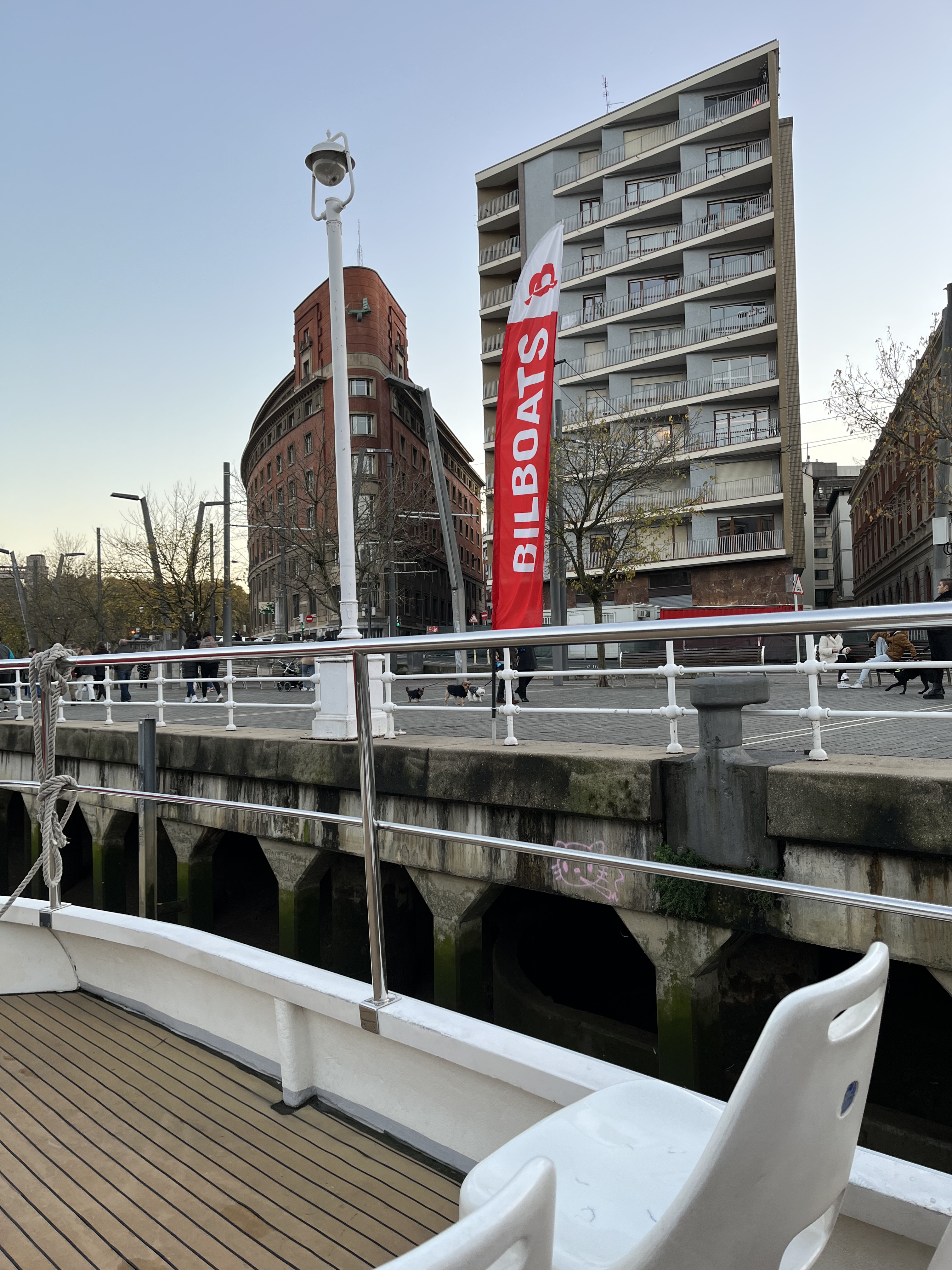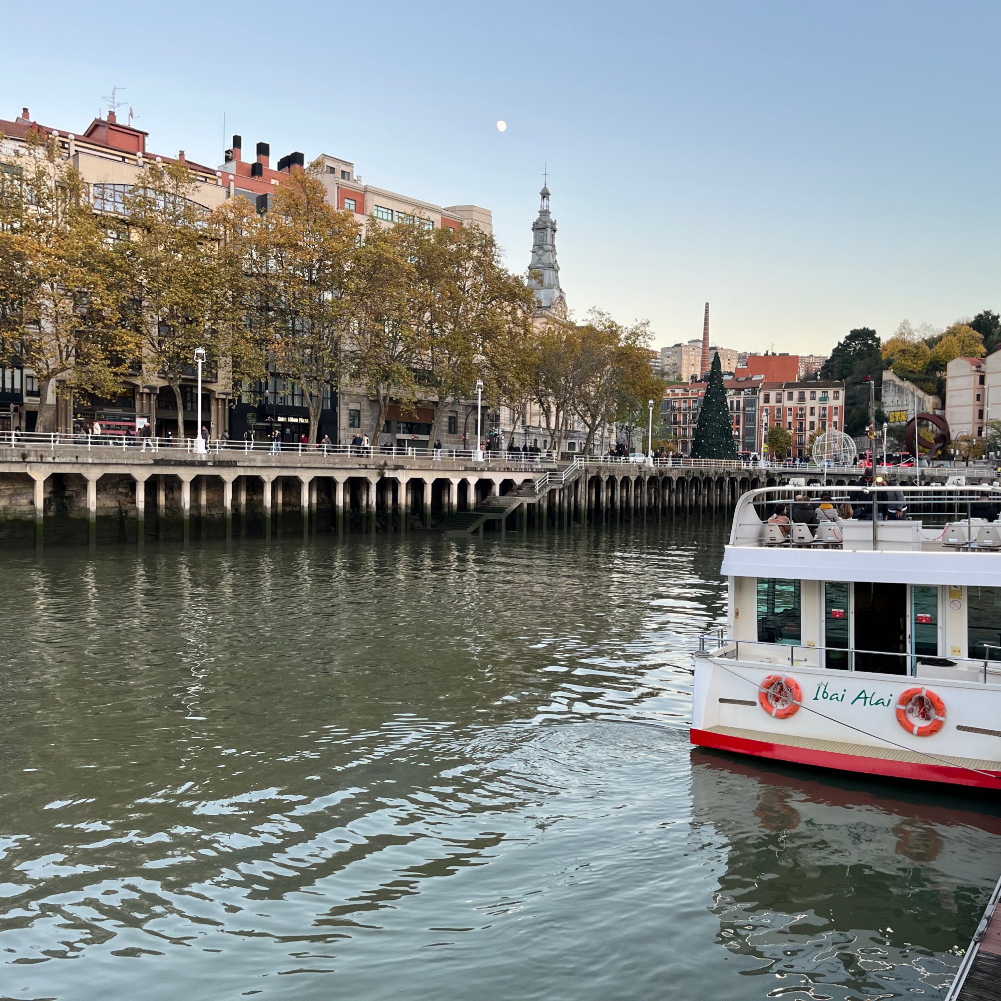 | Passeio no Rio Nervión pode ver mais informações em: https://www.bilboats.com/en/ há 2 tours – de 1 ou 2 horas Os tours têm início do lado oposto à Câmara – ao pé da Ponte del Ayuntamiento. |