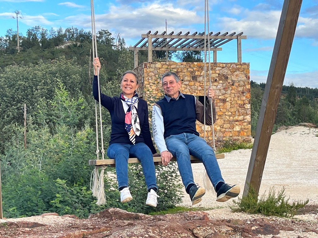 A seguir queríamos ir ao Miradouro das Fragas do Rabadão (15 km – 15 minutos). Para tal fomos em direção à aldeia de Milreu, tendo depois continuado pela EN2 seguindo a indicação de Penedo Furado, encontra-se uma seta a indicar Miradouro das Fragas do Rabadão. Aí deliciámo-nos com a soberba vista de uma forma inimaginável: de um baloiço (colocado ali recentemente), o que eleva a fasquia da contemplação. Sentimo-nos miúdos a baloiçar tendo um cenário verdadeiramente idílico de cortar a respiração. Aí observava-se o maciço rochoso bastante arborizado, o verde da vegetação, os passadiços do Penedo Furado e lá bem em baixo as águas tranquilas.