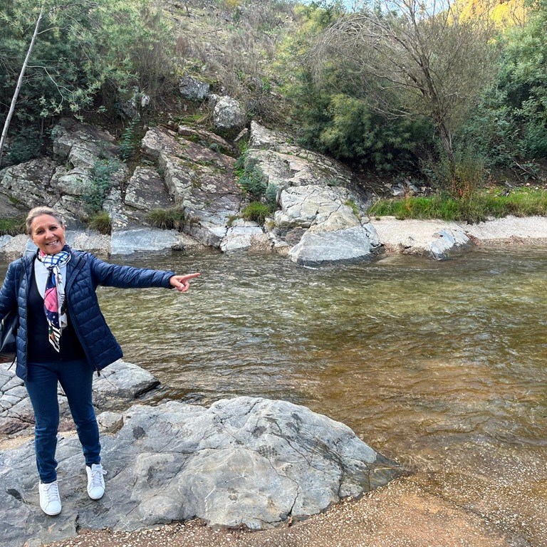 Tivemos pena de não contactar com o que dá o verdadeiro nome à rota: conhos: são pequenos seixos rolados resultantes da exploração de ouro por aluvião (terras, areia, lodo que se acumula pela acção das correntes e forma terreno onde exista água) datado da época romana e anteriores. Fizemos o regresso por estrada mas sempre acompanhados pelo som da água que deslizava ao longo da ribeira, observando a paisagem de um plano mais alto. Quando surgiu o primeiro lugarejo entrámos nele e a partir de determinada altura começámos a vislumbrar a aldeia de Água Formosa e a sua famosa ribeira de um plano superior. Oferece uma paisagem deslumbrante.