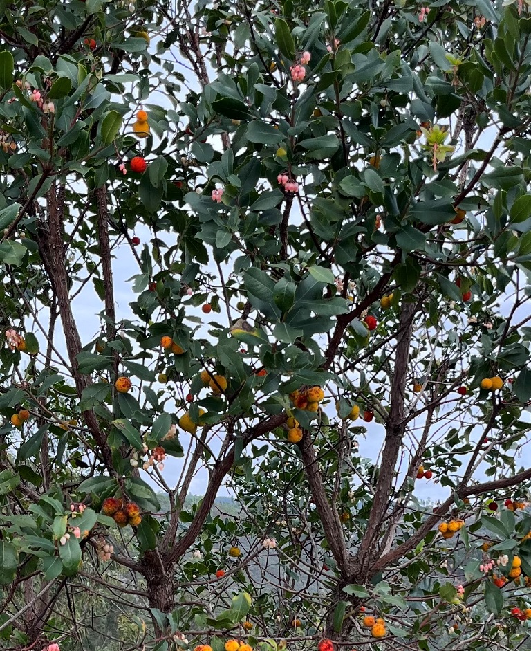 Ao longo do trajeto deliciámo-nos com medronheiros, não estando todos na mesma fase, ou seja uns ainda em flor, outros com o fruto ainda por amadurecer e outros já com o fruto vermelho. São momentos que irão ficar nas nossas memórias! Descemos até à aldeia tendo dado ainda um pequeno giro.