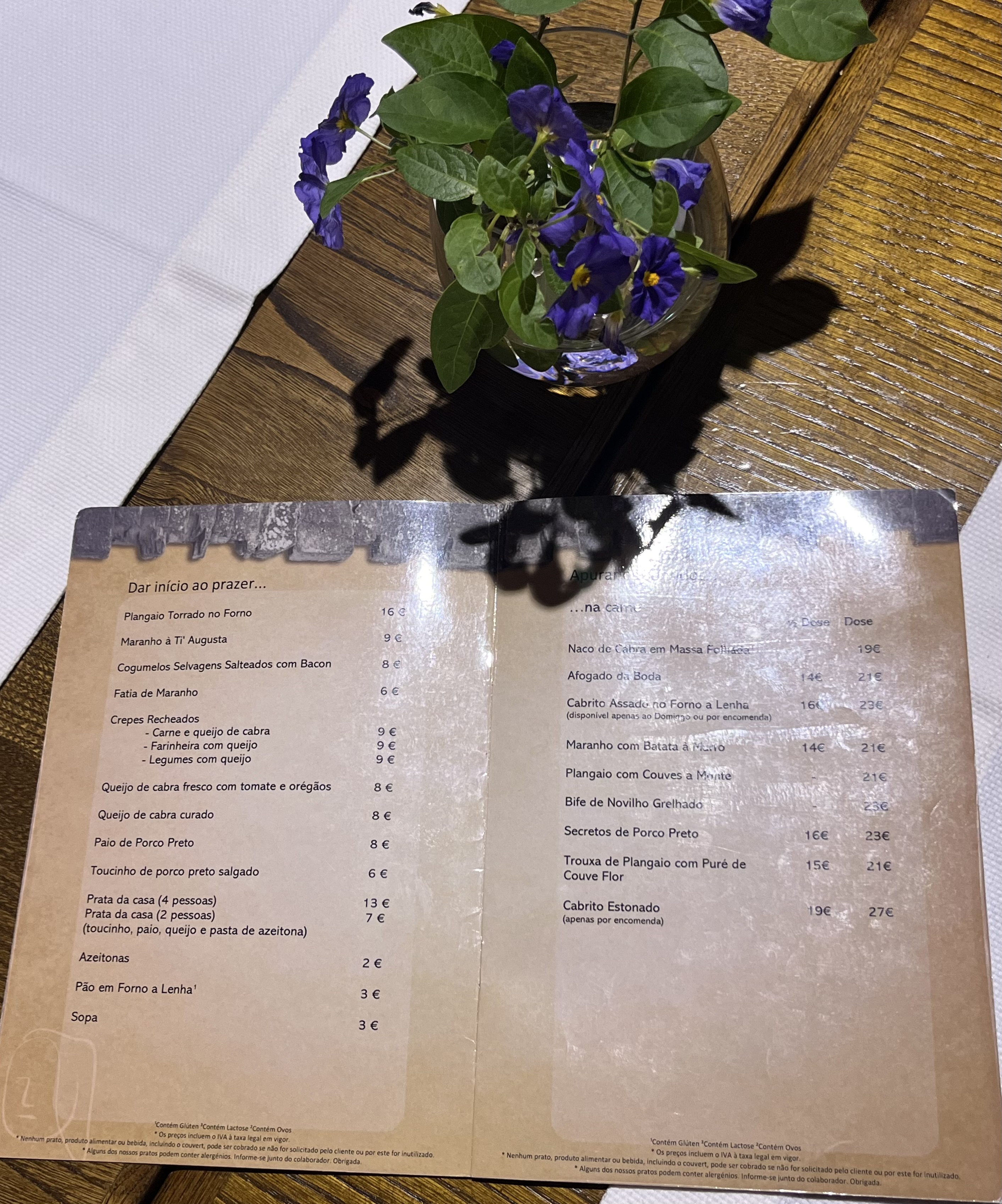 É impressionante como não é necessário afastarmo-nos muito da zona onde residimos (proximidades de Lisboa) para sentirmos desde logo que a oferta de iguarias foge àquilo a que estamos habituados. Pautámo-nos pela sugestão dada pela filha do chef, pois verificámos que era um restaurante gerido pela família. Comemos Sopa da Pedra e Maranhos. Tudo estava delicioso e o restaurante era um espaço pequeno, acolhedor e confortável com decoração típica e regional, de traça rústica.