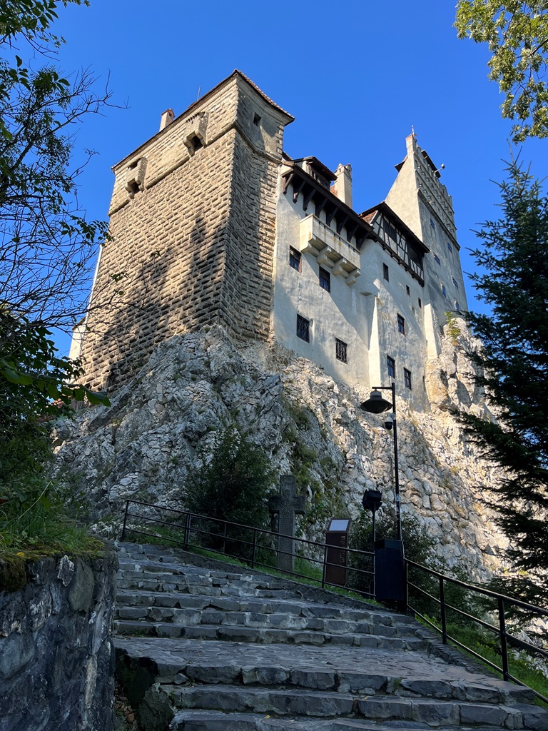 Após esses momentos era toca a começar a gozar um local icónico e mítico. Como qualquer castelo ou fortaleza situa-se num plano alto, no topo de um penhasco com 60 metros de altura, rodeado de montanhas, o que lhe confere, desde logo, um certo realce, oferecendo também uma vista imponente para a encantadora vila de Bran.