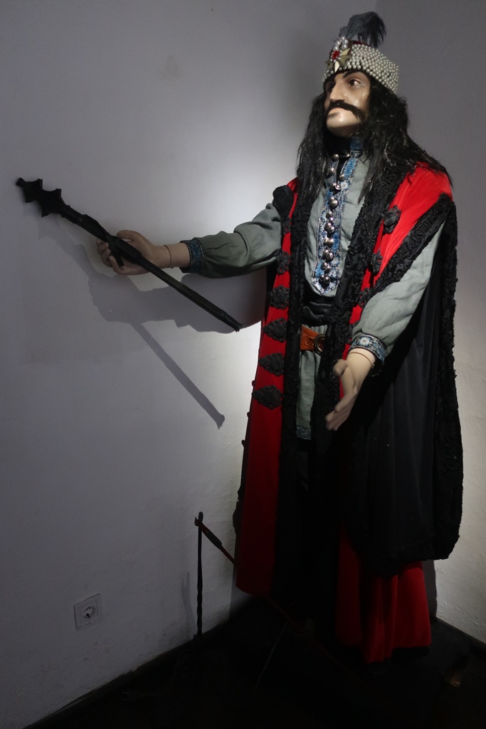 mas o que mais impressiona é uma sala com uma estátua de Vlad Tepes de um lado e do outro, algo que parecia um fantasma, uma criatura, um espírito ou uma figura medonha!