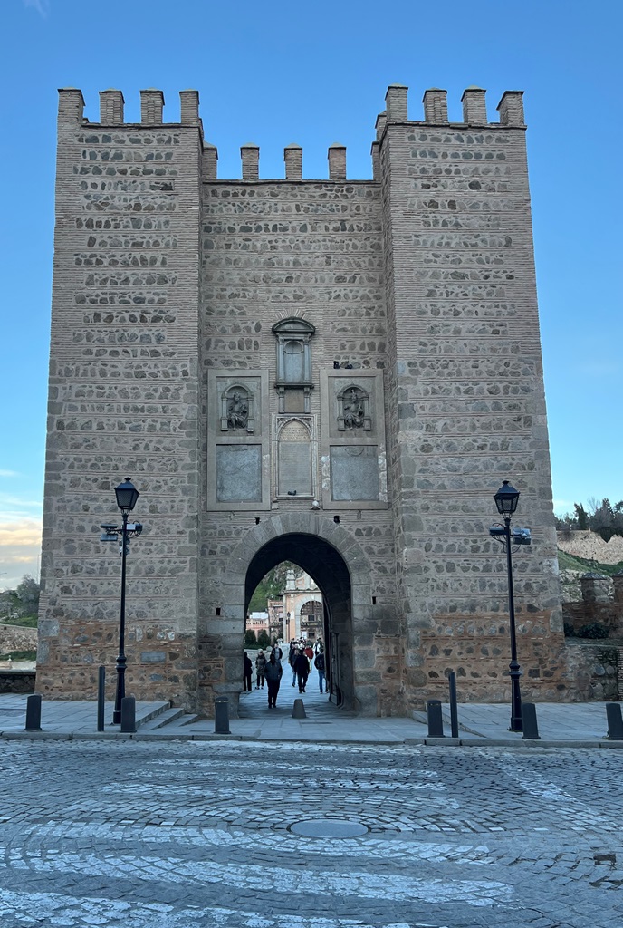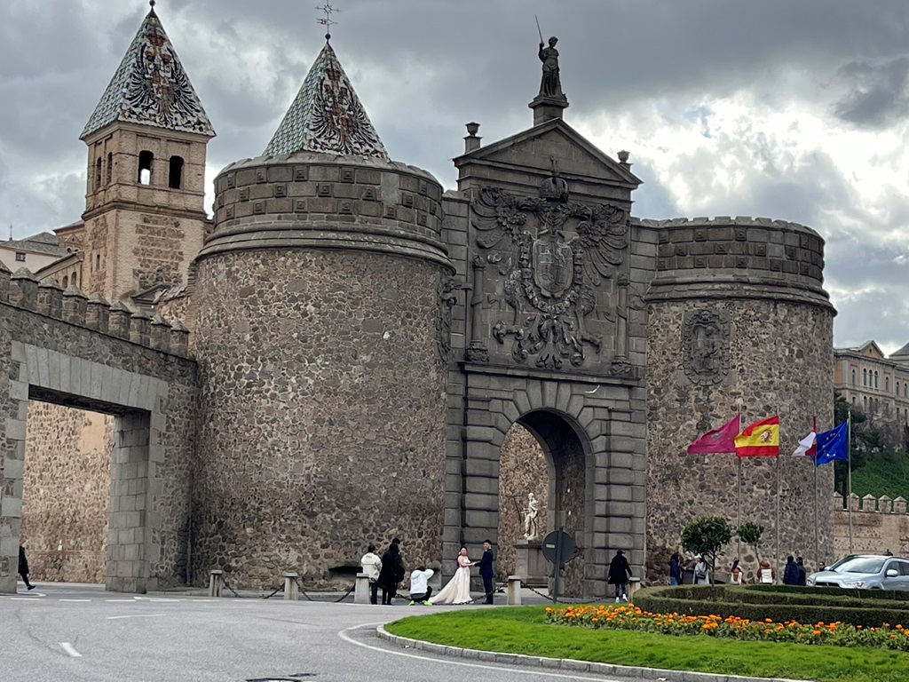 e se tem uma panorâmica bastante abrangente daquela zona da cidade, pois estamos numa zona alta. Continuámos a caminhar e alcançámos mais um ponto de interesse de Toledo: a Puerta de Bisagra, tendo gozado os seus 2 lados, sendo o do exterior o de maior realce pelos seus torreões circulares.