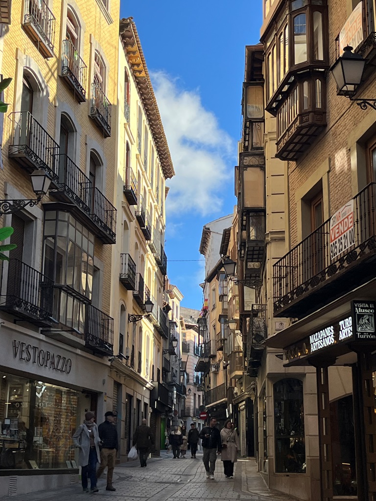 Após isso voltámos à Plaza del Ayuntamiento, tendo depois seguido ao longo da Calle de la Ciudad observando os edifícios e a imensidão de lojas que vendiam desde damasquinados, espadas, facas, maçapão, havendo também 2 conventos os quais também se dedicam ao fabrico de maçapão. Continuámos pela Calle del Salvador e quando alcançámos a Plaza de el Salvador enveredámos pela Calle de Santo Tomé