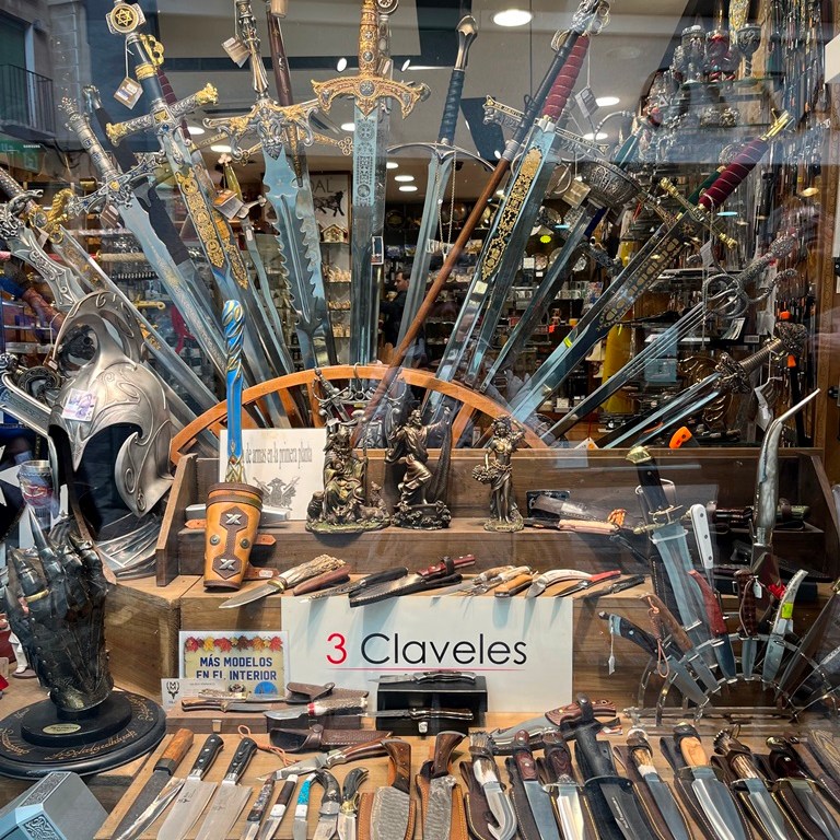 O damasquinado (*1), a “espadaria”(*2) e o maçapão (*3) são a trilogia identificativa desta peculiar cidade milenar. A concorrida e interessante Calle del Comercio (popularmente Calle Ancha) é uma das muitas com uma oferta riquíssima!