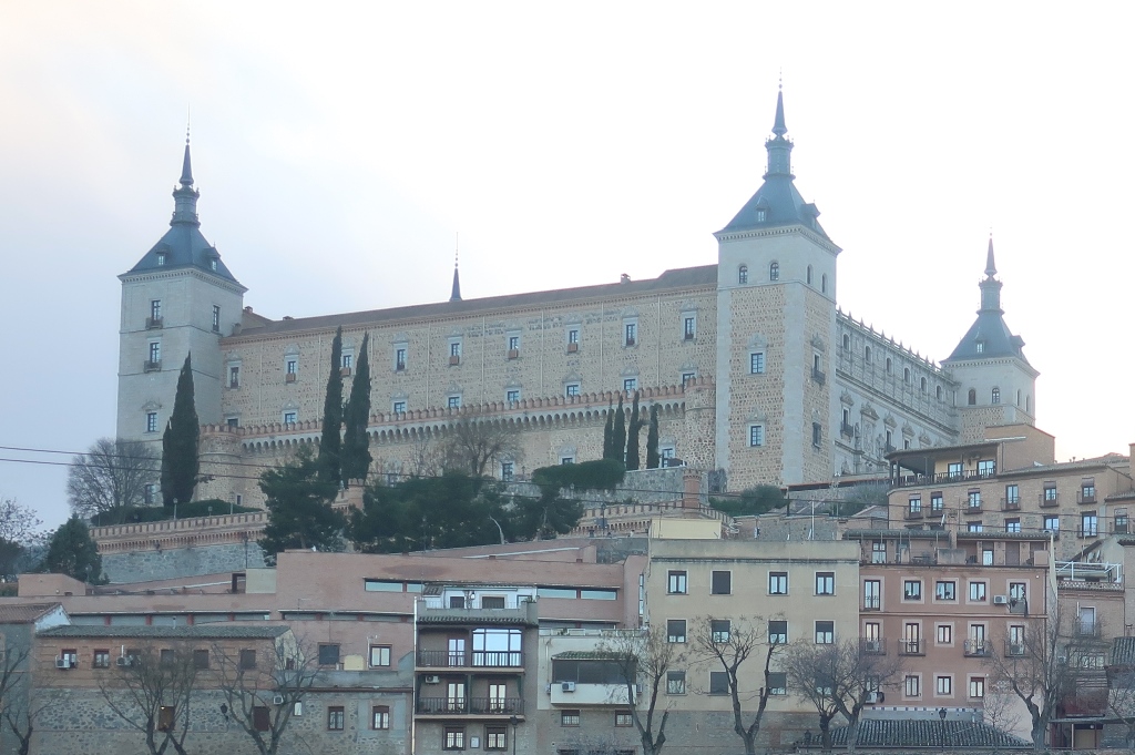 | ALCAZAR palácio fortificado sobre rochas situado na parte mais alta da cidade, é o mais imponente edifício de Toledo (usado como residência real durante vários períodos ao longo dos últimos 5 séculos) O Alcazar começou na época romana, com a construção de um palácio no século III. Em 1535, o edifício foi restaurado, ganhando um aspeto semelhante ao atual. (Durante a Guerra Civil, o Alcázar foi utilizado como ponto defensivo e de resistência da Guardia Civil) Hoje em dia, abriga a Biblioteca de Castilla-La Mancha e o Museu do Exército Horário -10.00 – 16.30h (de 3ª a domingo – fechado às 2ªs) Suba a 1 dos seus torreões e admire a espetacular vista panorâmica da cafetaria da Biblioteca (panorâmica de Toledo vista de cima) |