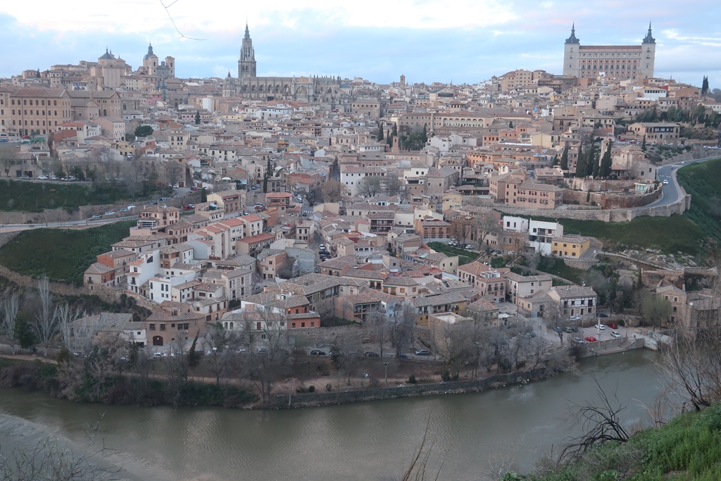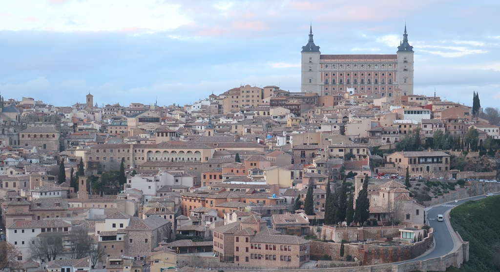 Nas proximidades de Toledo considerámos começar a explorar um pouco da cidade, antes de ir ao hotel fazer check-in. Fizemos a Ponte Azarquiel (ao longo da qual dirigindo os nossos olhares para a direita começámos a ver desde logo a Ponte de Alcántara, o rio Tejo bem como casario, destacando-se entre ele o Alcazar) tendo no final da mesma, na rotunda virado à direita para apanhar o P.o de La Rosa (nome esse que vai mudando ao longo do percurso – Carretera do Alto e Carretera del Circunvalación) – o início da estrada que acompanha o rio na margem oposta à cidade e que dá acesso a vários miradouros com vistas deslumbrantes sobre Toledo – para subsequentemente atingir a Ponte de Alcântara…