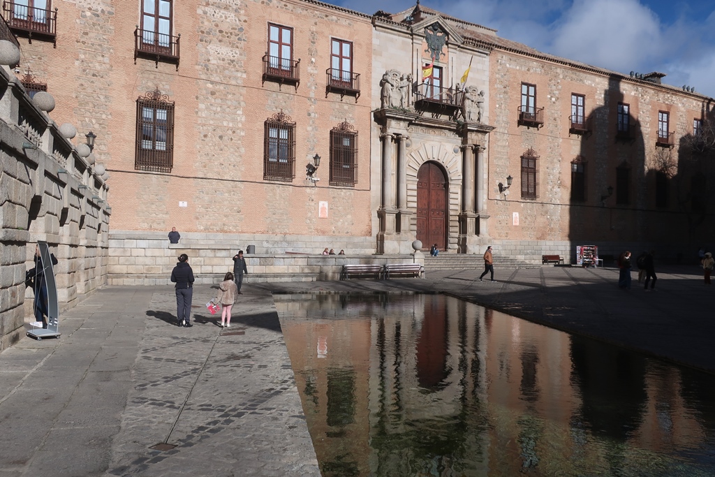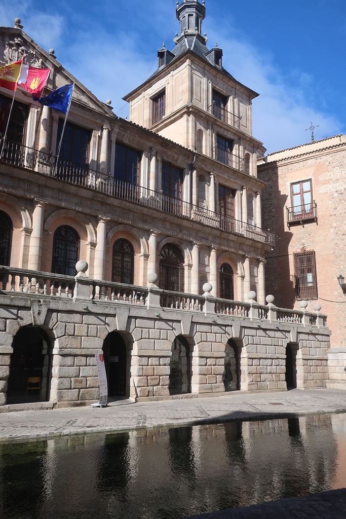 | PLAZA DEL AYUNTAMIENTO também conhecida como Praça da Câmara Municipal, é o segundo centro nevrálgico da cidade é um local bastante visitado e apreciado devido às belas construções que existem em redor desta praça: a Câmara Municipal de Toledo, (o Posto de Turismo da Câmara Municipal de Toledo), a Catedral de Toledo, o Palácio da Justiça e ainda o Palácio do Arcebispo de Toledo. Moradores e turistas/viajantes misturam-se em torno desta praça, tirando fotos, descansando e admirando os vários edifícios AYUNTAMIENTO O edifício da Câmara Municipal de Toledo, do século XVI, é de estilo herreriano (estilo de arquitetura que resulta da evolução do plateresco até ao purismo clássico, enquadrando-se dentro da arquitetura renascentista. Deve o seu nome ao seu principal representante, Juan de Herrera, autor do Mosteiro do Escorial). |