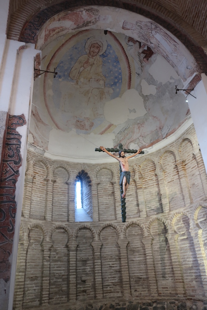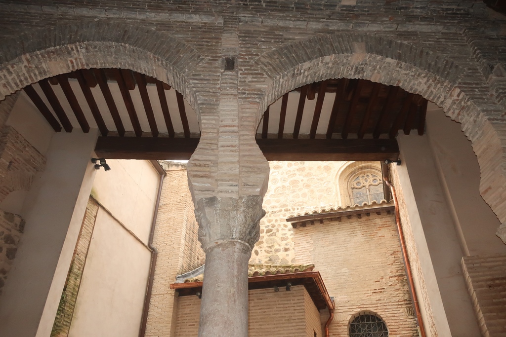| MESQUITA DEL CRISTO DE LA LUZ A Mesquita de Bab Al Mardum, o edifício mais antigo de Toledo, (datado do ano 999), do período islâmico, permanece intacta desde a sua construção. Foi consagrada ao culto cristão no século XII, passando a ser denominada como Igreja do Cristo da Luz. A sua planta é quadrada tendo a fachada em tijolo decorada com arcadas. No seu interior, os arcos em ferradura sustentam nove abóbadas, sendo o seu traçado diferente nas diferentes partes da nave. Quando foi consagrada ao culto cristão, acrescentou-se o cruzeiro e uma ábside em estilo mudéjar decorada com arcos cegos, a qual se tornaria famosa por ser considerada a mais antiga amostra de arquitetura mudéjar conhecida. |