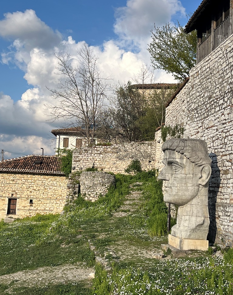 É interessante deixarmo-nos perder nas ruelas calcetadas do castelo e ir descobrindo os vários locais bem como contemplar a paisagem oferecida de um plano superior. Passámos pela Catedral de São Nicolau e bem perto estava a Igreja bizantina de Sta Maria Blaherna (em albanês: Kisha e Shën Mëri Vllahernës) na qual entrámos. Descendo depois um pouco estávamos perante a Estátua com a cabeça de Constantino, o Grande. Daí via-se uma zona amuralhada e para além dela vislumbrava-se parte do rio.