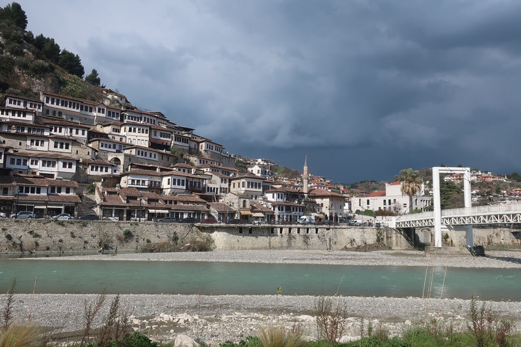 A pequenina, charmosa e histórica cidade de Berat é assim caracterizada por um conjunto de casinhas brancas com um traçado muito semelhante, na encosta de montanhas, cortadas pelo rio Osum (Osumit em albanês), e uma fortaleza bizantina no topo que oferece uma das melhores vistas da cidade bem como igrejas e mesquitas.