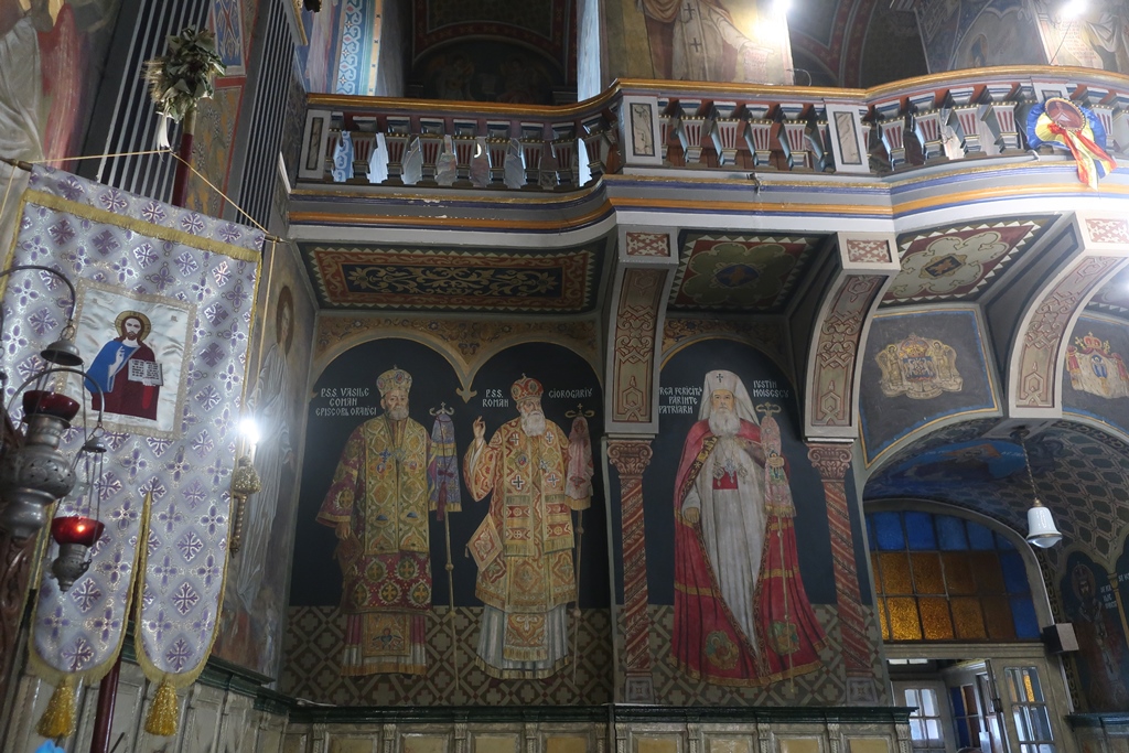 a Câmara Municipal e a Igreja Ortodoxa (Biserica Ortodoxa Cu Luna) da Lua com pinturas interiores fabulosas.
