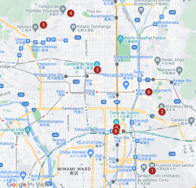 Como Quioto é uma cidade muito grande, a deslocação exigiria um estudo apurado bem como gerir o melhor possível os locais a visitar em cada dia, tendo, no entanto, a liberdade de prolongar a duração da visita em cada um dos locais.