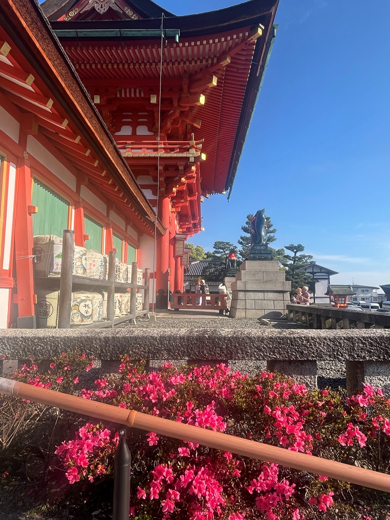 Esse Santuário é algo do outro mundo! Pena estar repleto de gente pois não há ninguém que vá ao Japão e perca a oportunidade de visitar tal relíquia! Há que tentar, dentro do possível, ignorar “as milhentas pessoas” e tirar partido de tal local! Deixe-se perder por lá e caminhe ao longo do corredor com várias centenas de torii** alaranjados – os Senbon Torii …. e se tiver tempo chegue ao cimo para obter perspetivas de um plano superior! Estivemos lá não chegou a 2 horas.