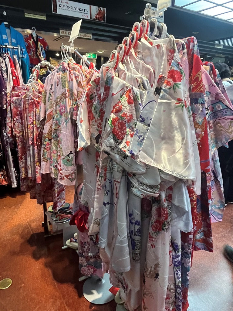 Deixámo-nos perder e deslumbrar por ali, indo no sentido da rua inicial. Aí foi difícil não nos deixarmos encantar, sobressaindo a nossa atenção para além de outros espaços, uma loja com uma variedade de kimonos lindíssimos. Saímos daqui por volta das 10 h e 30 minutos.