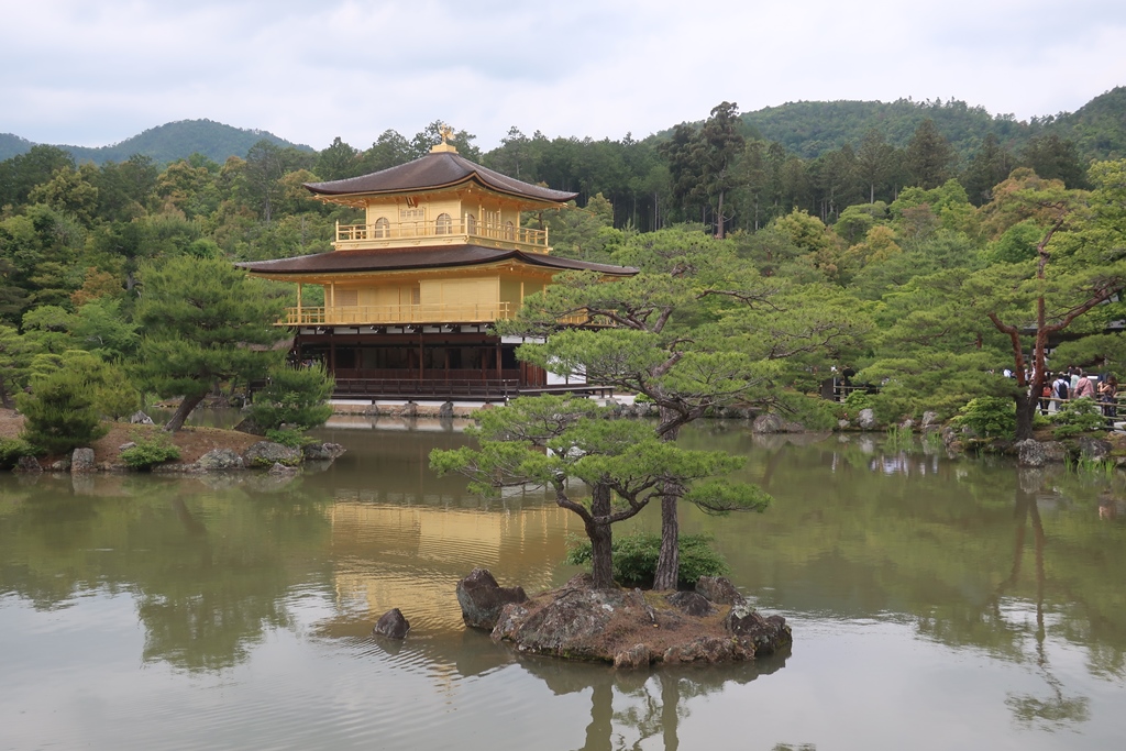 | Templo Kinkaku-ji – conhecido como Pavilhão Dourado oficialmente designado templo Rokuon-ji mas mais conhecido como Kinkaku-ji localizado no norte de Quioto, é um templo Zen cujos dois andares superiores estão completamente cobertos de folhas de ouro cintilantes e no telhado do pavilhão está uma fenghuang dourada (pássaro chinês mitológico) O templo está situado num magnífico jardim de passeio japonês e num lago chamado Kyōko-chi (Mirror Pond) tranquilo, que reflete o dourado do pavilhão Originalmente construído no século XIV como uma vila de aposentadoria para um shogun, Kinkaku-ji tornou-se um ícone de Quioto estando incluído nos “Monumentos Históricos da Antiga Quioto” e sendo também Património Mundial da UNESCO desde 1994 (devido à sua arquitetura espetacular que harmoniza de forma única a cultura e o design usados por nobres, samurais e budistas). A sua beleza deslumbrante faz dele um dos locais mais visitados do Japão ACESSO: linha do metro Karasuma até à estação de Kitaoji (15 min,¥250) e apanhar táxi (10 min, cerca de ¥900) ou autocarros: 101, 102, 204 ou 205 – 10 min, ¥230, de lá para Kinkakuji. |