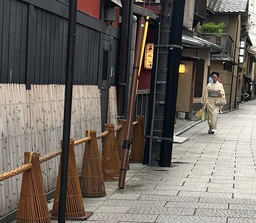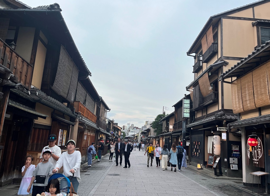 Depois destes momentos, mais esperavam por nós! Um regresso ao autocarro, por volta das 16.30, para continuarmos a desbravar mais um pouco da maravilhosa Quioto. Fomos para o famoso e típico bairro de Gueixas: Gion (onde chegámos por volta das 17h). É uma zona tranquila com ruas empedradas e com casas tradicionais de madeira (ou “machiya”) muito interessante.