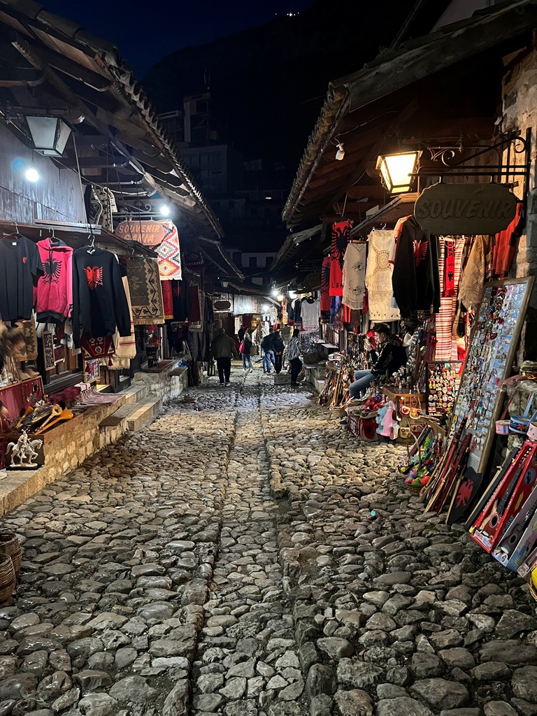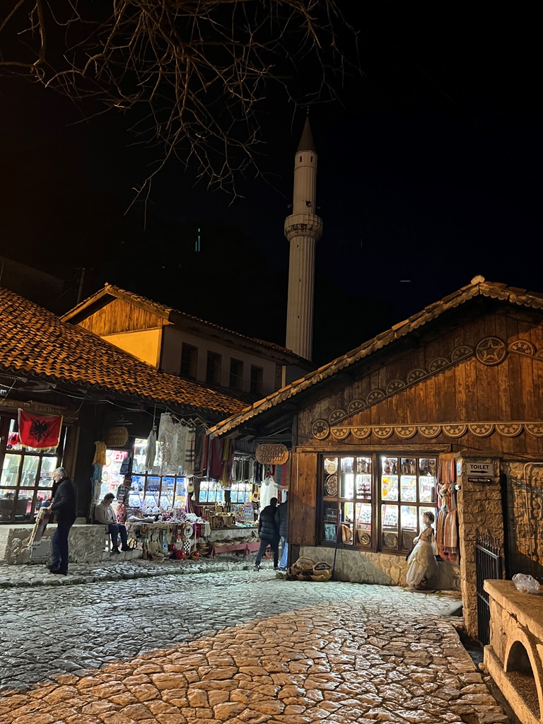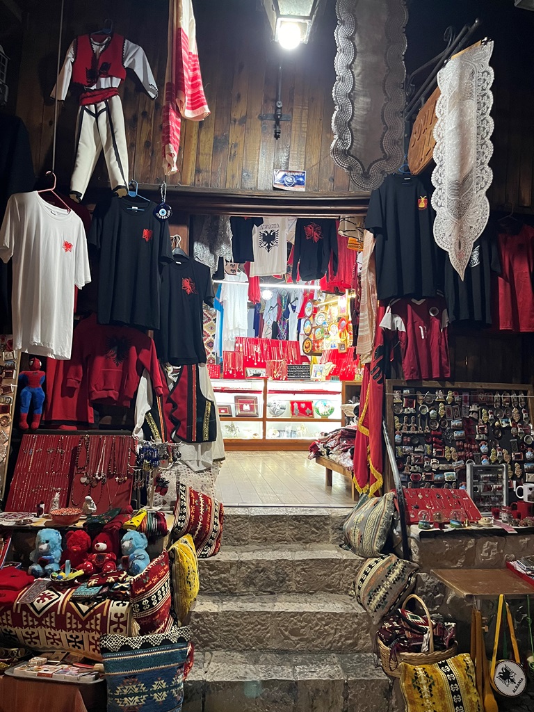 | ANTIGO BAZAR O famoso bazar da cidade serve de ponte entre o passado glorioso e o presente, oferecendo uma rica variedade de produtos tradicionais feitos por artesãos locais. O característico bazar de paralelepípedos de Krujë, que leva diretamente ao castelo, que é complementado por fileiras de lojas de ambos os lados, funciona desde a época de Skanderbeg, no século XV, época em que as suas lojas flanqueavam a entrada do castelo. O bazar resistiu a 500 anos de domínio turco e foi restaurado para marcar o 500º aniversário do nascimento de Skanderbeg. O bazar de Krujë foi proclamado monumento cultural em 1961. |