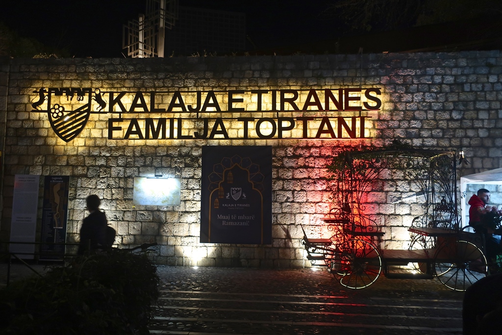 No regresso ao local de estacionamento do carro (Praça Skanderbeg) ainda passámos na zona da Pirâmide de Tirana, no Sino da Paz, bem como na Rruga Murat Toptani – 1 das poucas ruas pedonais da capital. É uma zona animada – castelo de tirana – kalaja e justiniati – do qual só resta uma parede da era otomana – que agora alberga lojas tradicionais e modernas, restaurantes e bares: Uma ruína transformada num centro comercial.