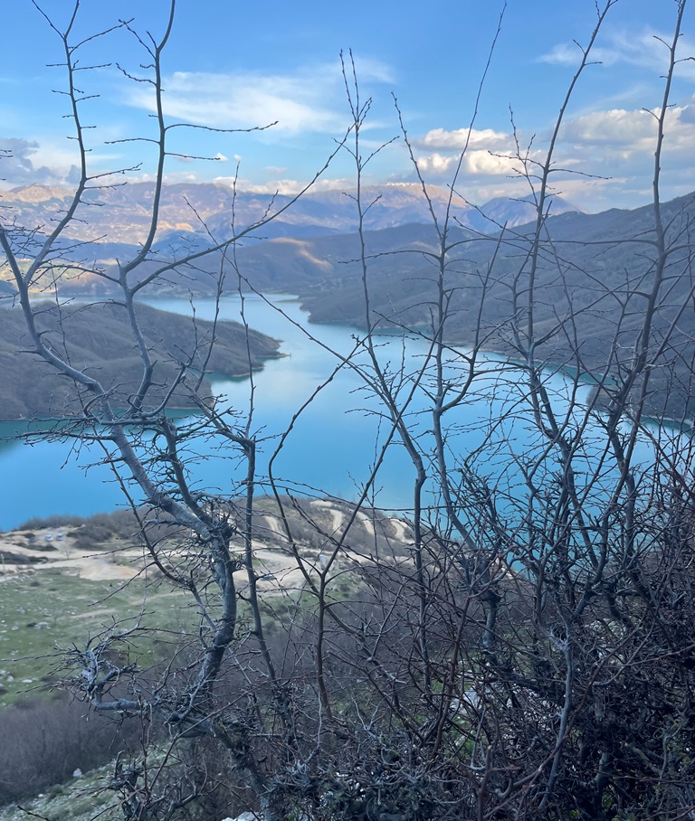 A manhã prosseguia com um trajeto de poucos quilómetros, 21, mas que representaram cerca de uma hora pois a estrada era picada: mau piso, muitas curvas, algumas zonas ascendentes, mas acompanhados de uma paisagem deslumbrante pois parte do trajeto foi feito ao longo de um desfiladeiro. Com tudo isto eis-nos chegados ao Lago Bovilla – um local a não perder.