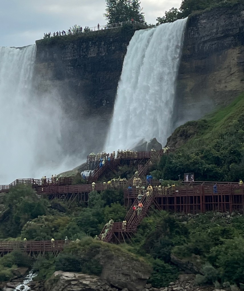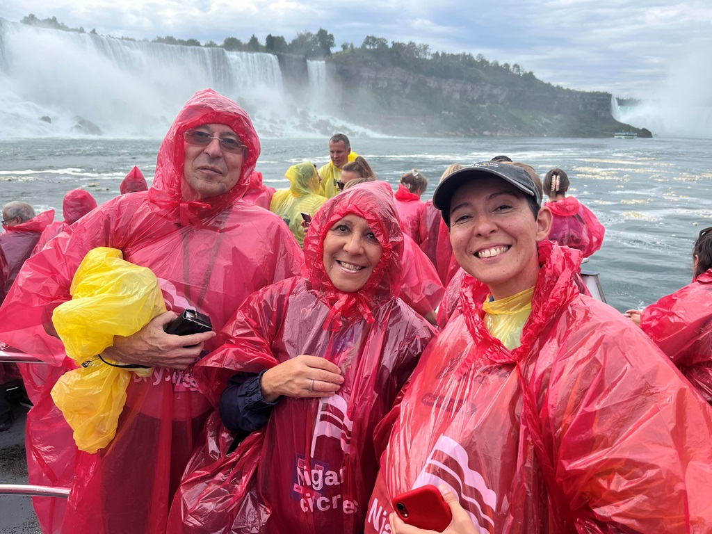 O guia que nos acompanhou foi dando informações acerca do local em causa. Adorámos a experiência! O tour teve início no Queen Victoria Park tendo passado junto da estátua do Tesla e a seguir fomos para o Table Rock Centre para nos encaminharmos para os elevadores (descida de 38 metros) e depois para os túneis (198 metros) no final dos quais podíamos ver a água das cataratas a cair – mais de 100 milhões de litros por minuto! Algo do outro mundo!