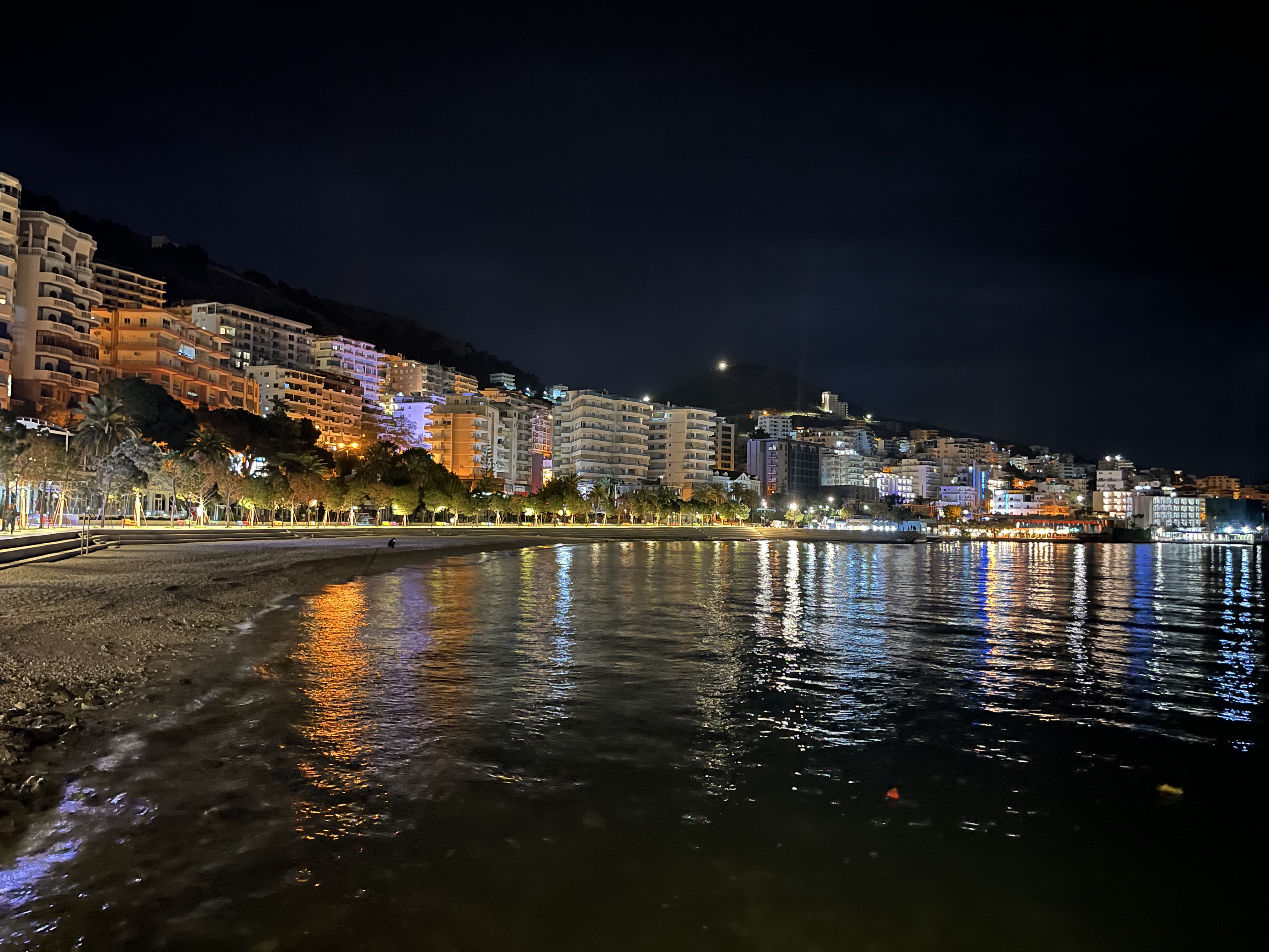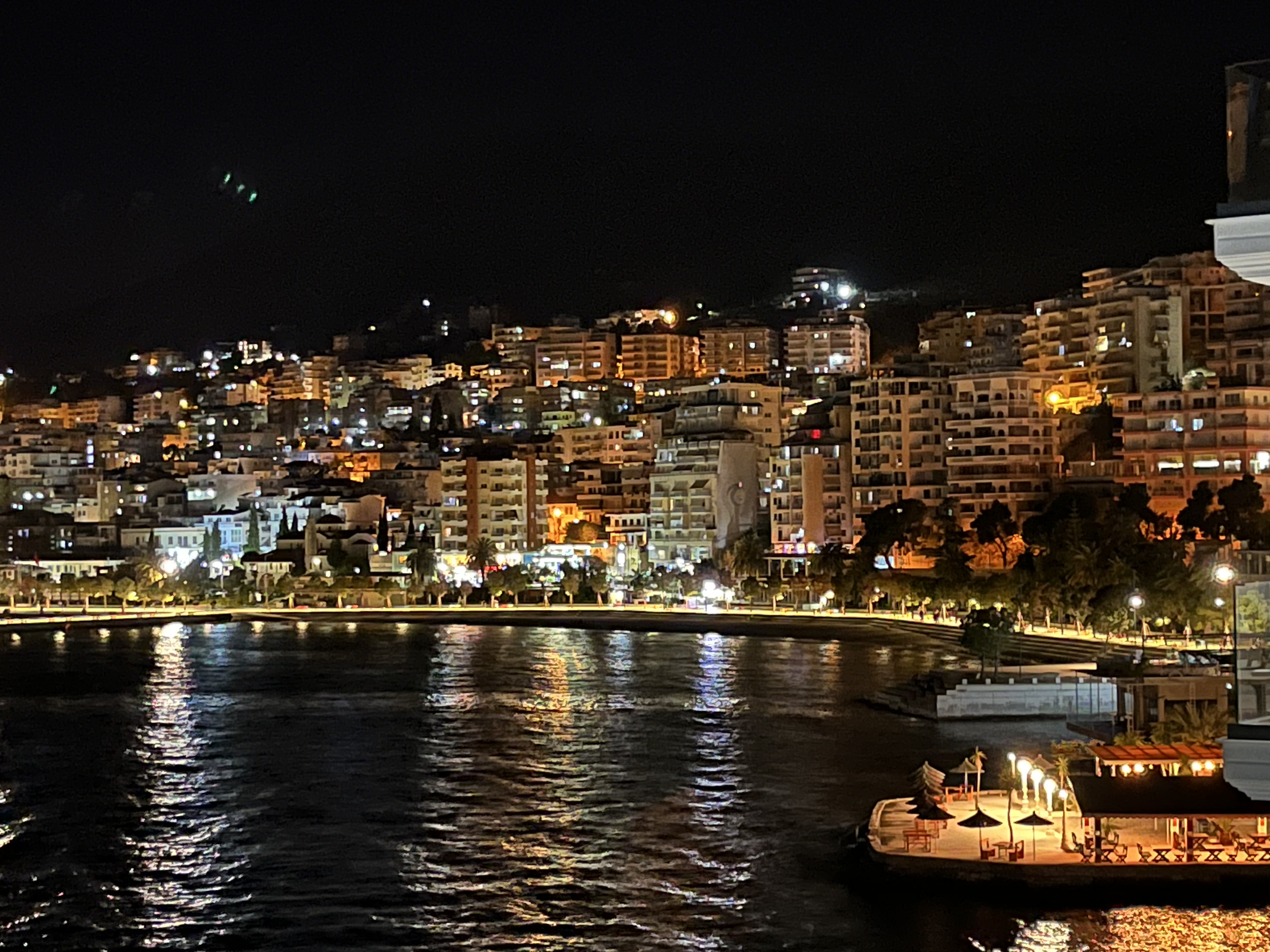 Tendo chegado a Sarandë ao cair do dia, fomos, desde logo, brindados com uma linda baía já com alguma iluminação a qual ainda realçava mais a sua beleza. Ficámos hospedados no Demi Hotel com vista para esse local maravilhoso.