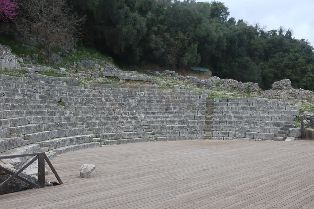O monumento grego antigo mais interessante é o anfiteatro, que está entre os edifícios mais bem preservados da cidade. Ele está localizado logo abaixo da Acrópole e de frente para o Canal Vivari. O teatro foi construído no século III a.C., possivelmente nas paredes de um teatro menor e mais antigo. Durante o período romano, sofreu muitas reformas e ampliações.