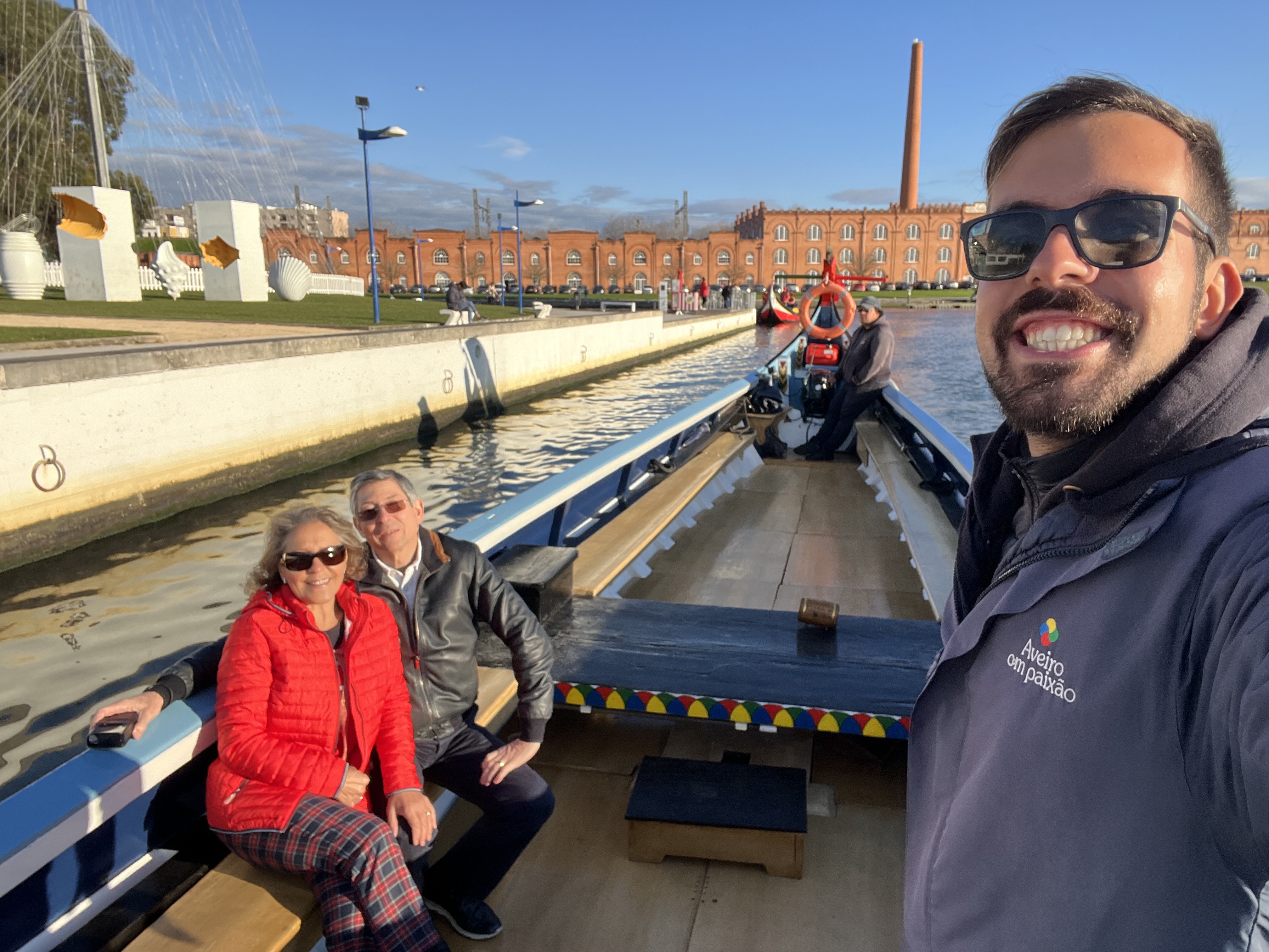 O afável guia foi fazendo algumas explicações ao longo do trajeto o que ainda enriqueceu mais esses momentos. Esta navegação levou-nos a sítios especiais. Partimos da zona do Largo do Rossio de Aveiro, tendo começado por se passar na Ponte dos Botirões e Ponte dos Carcavelos*.
