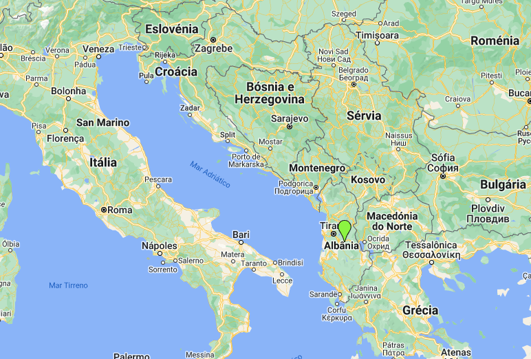 A Albânia fica no sudeste da Europa, fazendo fronteira com Montenegro a noroeste, Kosovo a nordeste, Macedónia do Norte a leste e Grécia ao sul. O Mar Mediterrâneo com o Mar Adriático e o Mar Jónico (ensolaradas costas) compõem toda a fronteira oeste do país.