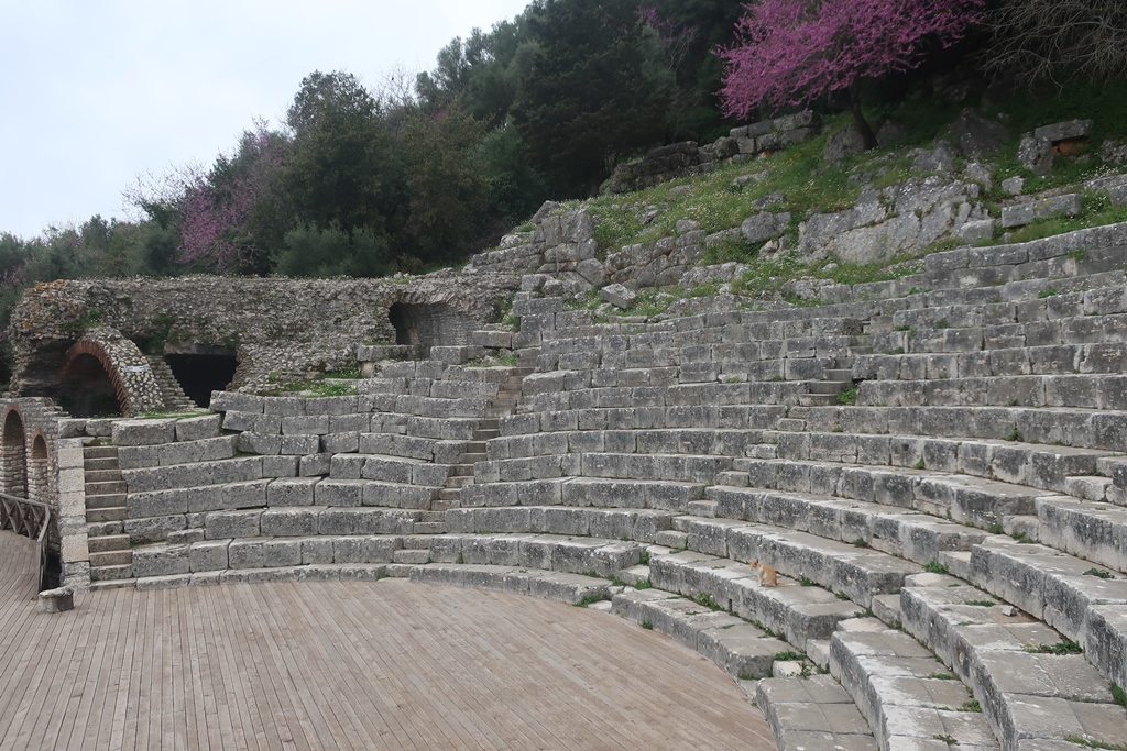 Mais um visto feito! Aí íamos nós fazer um trajeto interessante mais para sul com o intuito de uma passagem rápida pela famosa praia de Ksamil (que de momento estava a passar por várias reconstruções – certamente a preparar-se para a época balnear) e depois prosseguir para o Parque de Butrint. Aí era deixarmo-nos perder imaginando como se teria vivido num local com uma envolvência tão maravilhosa e com monumentos, que podemos considerar bem conservados, uma vez que têm perdurado durante séculos. São de referir o anfiteatro romano, o batistério, a basílica, os 2 castelos bem como as muralhas. É um local único e imperdível numa viagem ao sul da Albânia!