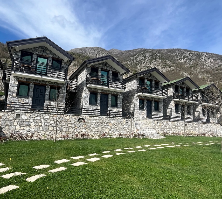Tendo nós pedido ao Google Maps a localização do nosso alojamento Bujtina Adora em Fierze, e vendo os quilómetros a diminuir, estávamos convencidos que estaríamos a pouco tempo de gozar mais um local extraordinário. Mais uma vez o Google Maps nos enganou ou esse troço da estrada não estava mapeado! Nada que um telefonema não resolvesse! Alguém nos veio buscar ao ponto combinado! Se não tivéssemos um veículo 4×4 teríamos que ter ido na carrinha do alojamento! Depois de termos passado primeiro pelo “inferno” chegámos ao paraíso! O conjunto de casinhas do Bujtina Adora ficavam nem mais nem menos que num plano superior, tendo o rio Valbona como cenário. Simplesmente inebriante!
