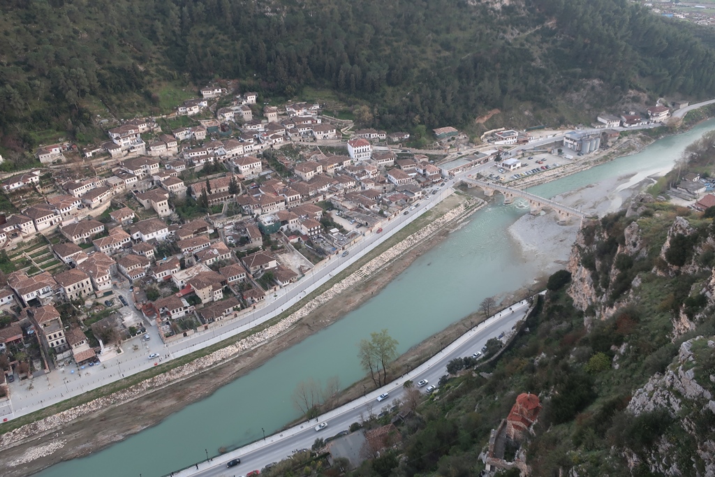 Saímos cedo em direção a Berat, tendo feito passagem e ligeira paragem em Belsh para gozar o vilarejo refletido nas águas do lago. Mas era tocar a girar dali para fora pois estávamos empolgados em atingir a Cidade das Mil Janelas, mais concretamente Berat. Chegámos por volta das 11h. Feito check-in, tínhamos o resto do dia para explorar este tesouro albanês!