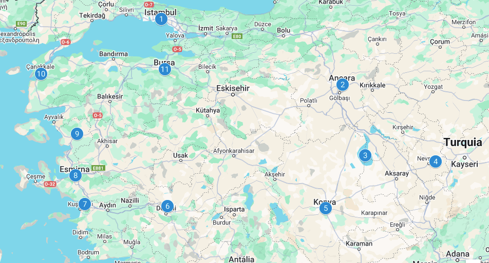 Aqui está o esquema do nosso circuito pela Turquia – (de 18 a 30 de abril)
